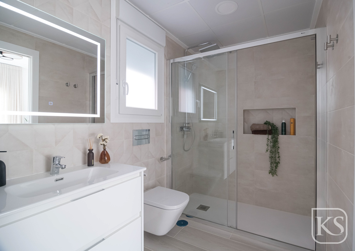 Entertain in style with the spacious living areas, adorned with LED lighting and wall-integrated spotlights that illuminate the space with a warm, inviting glow. The gourmet kitchen is a chef's dream, equipped with sleek lacquer cabinets, natural quartz countertops, and state-of-the-art Balay appliances. Whether you're preparing a casual meal or a gourmet feast, cooking in this kitchen is sure to be a delight.