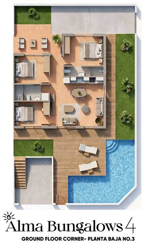 Alma Ground Floor Bungalows offer modern living with private outdoor space in a prime coastal location, perfect for both lifestyle buyers and investors.