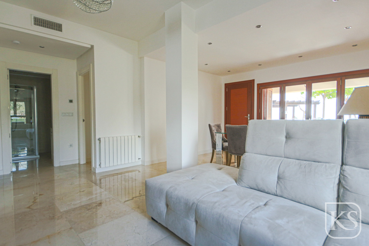 Keystyle Properties welcomes you to Apartamento Crystal, a beautifully presented ground-floor apartment located on the sought-after El Valle Golf Resort in Murcia. This spacious corner plot apartment enjoys extra outdoor space, stunning views of the golf course and surrounding mountains, and the rare benefit of three bedrooms—making it a unique opportunity on the resort.
