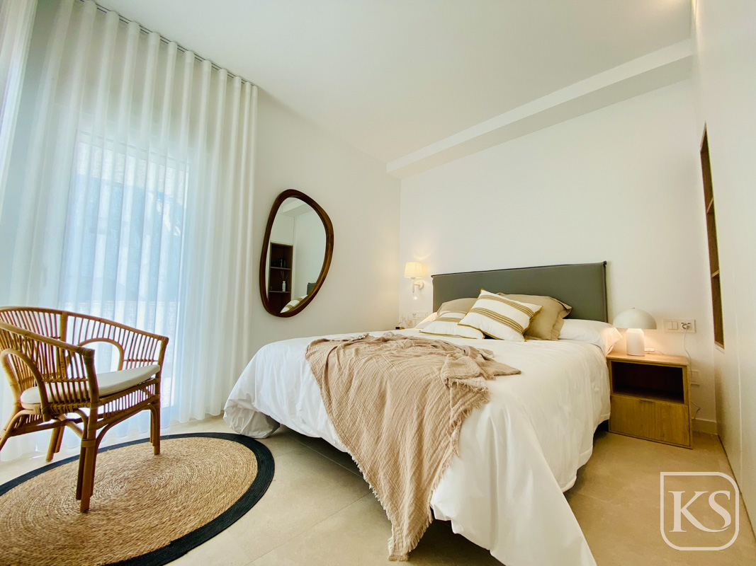 This new development offers 16 stylish residences designed to provide both comfort and luxury, perfect for permanent living or holiday retreats. Each bungalow boasts 3 bedrooms and 2 bathrooms, offering spacious living with contemporary finishes throughout. Ground-floor units feature expansive front and rear terraces that open directly to the communal pool and garden, while top-floor units enjoy the privacy of a large rooftop solarium, ideal for soaking up the Mediterranean sun.