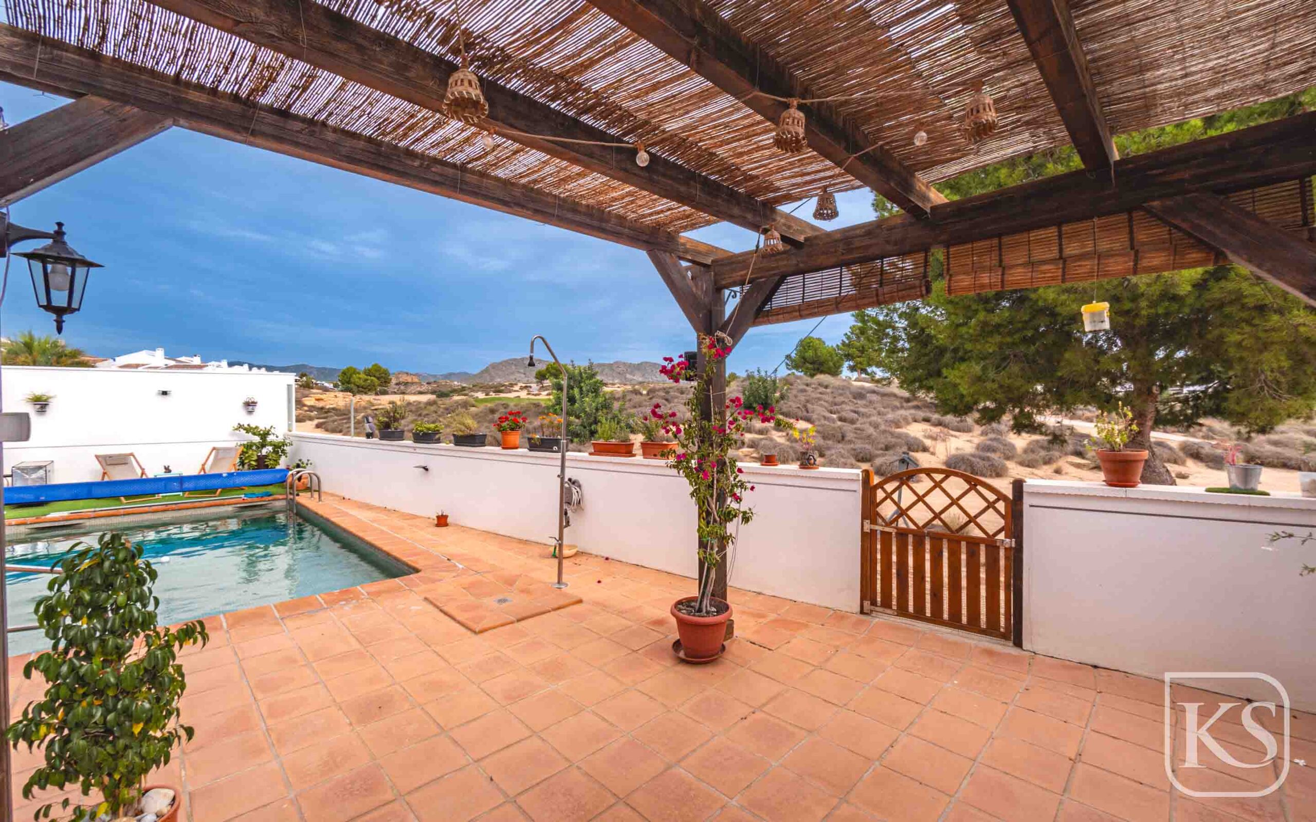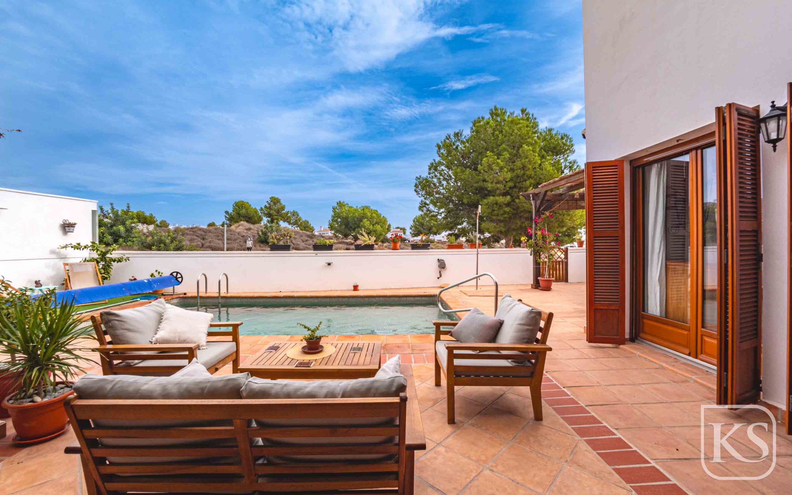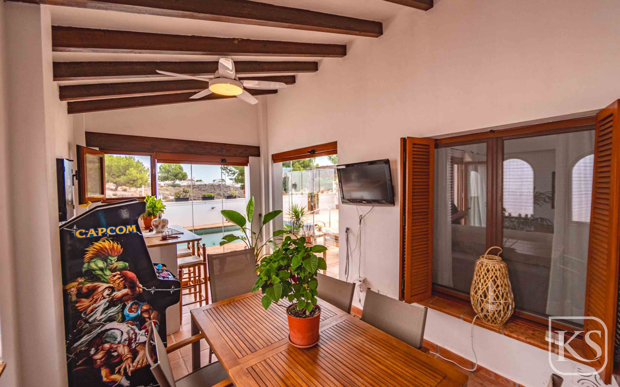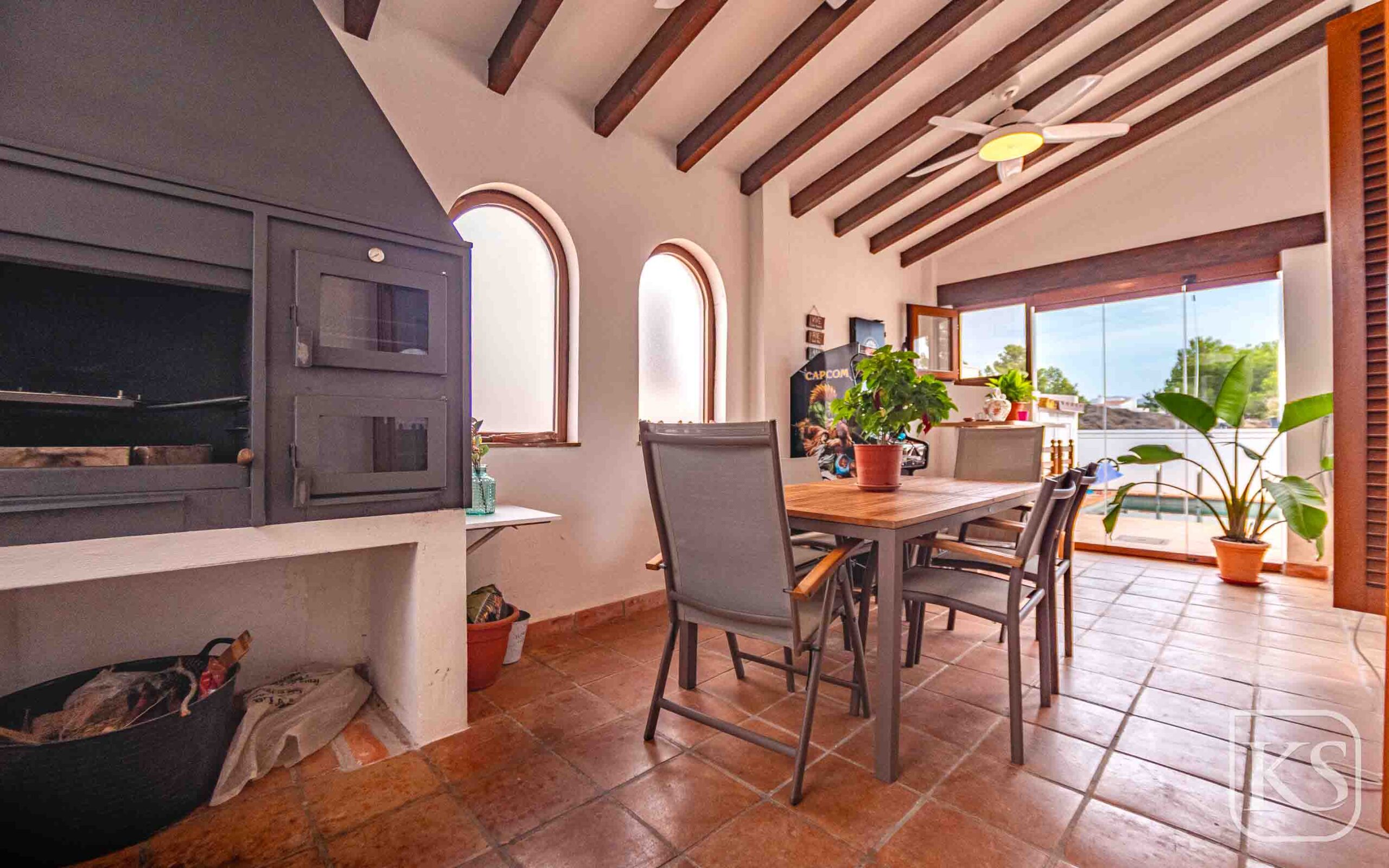 The villa has some extra additions such as solar panels and an enclosed terrace with a large BBQ and bar.