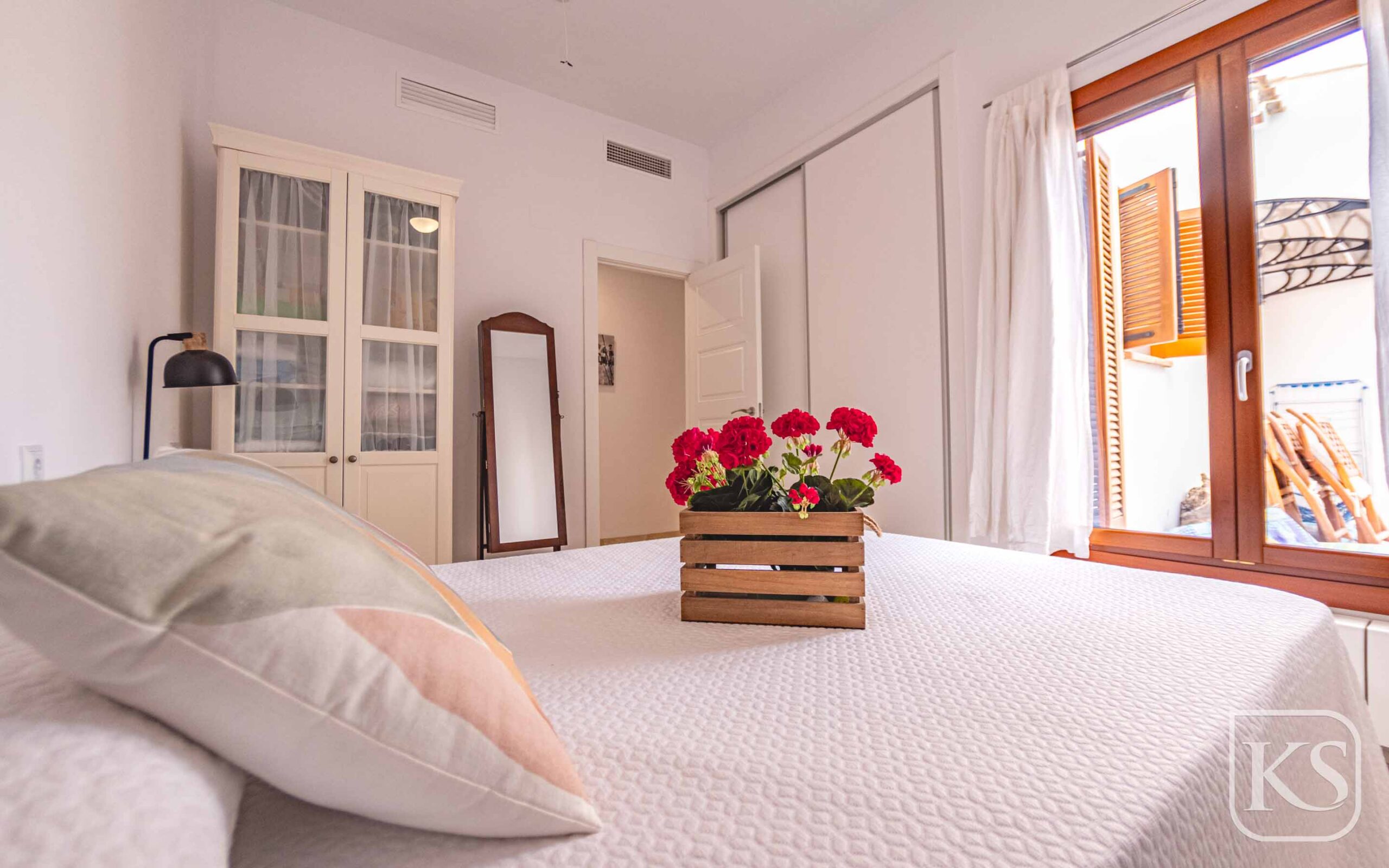 As you step inside, you’re greeted by an open, light-filled space that seamlessly connects the kitchen, living, and dining areas, featuring a newly installed kitchen with a stylish peninsula island overlooking the living room. The utility room and a versatile fourth bedroom with private access offer various possibilities, whether it’s storage or conversion into an indoor garage. The living room exudes serenity with its tasteful decor, blending shades of grey and teal furniture, light wood dressers, and a free-standing wood-burning fireplace, adding character to the space. The living room’s connection to the enclosed outdoor area enhances the feeling of airiness.
