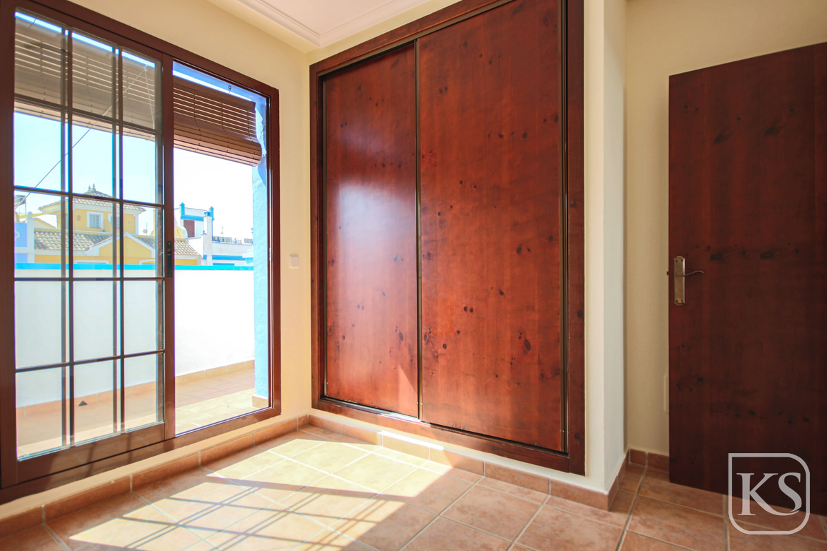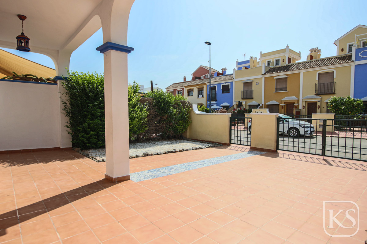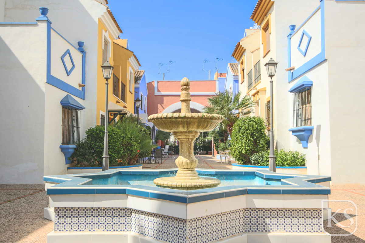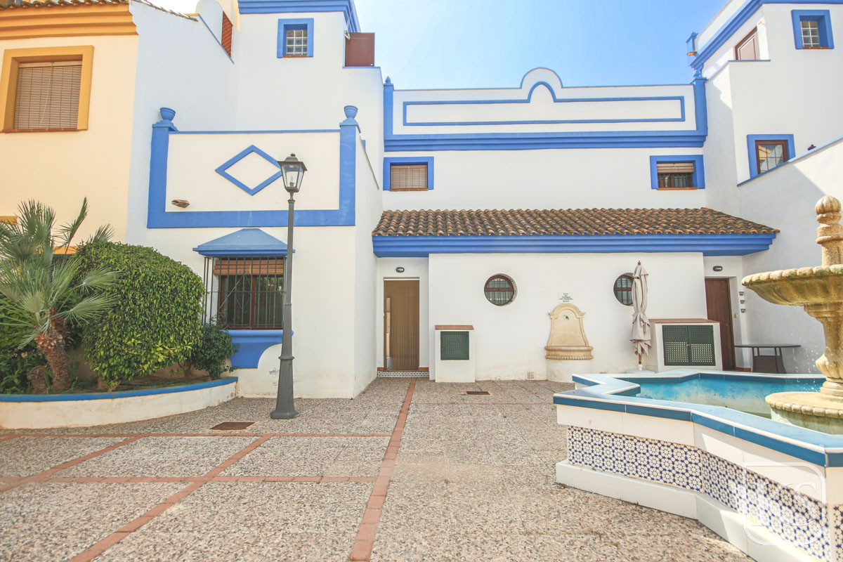 From the front, the home benefits from a south-facing terrace with off-road parking, as well as additional street parking directly outside. To the rear, there is access through a beautiful gated community courtyard, complete with a fountain that adds a truly authentic Spanish charm.