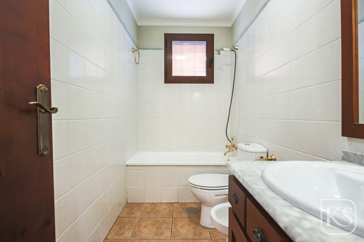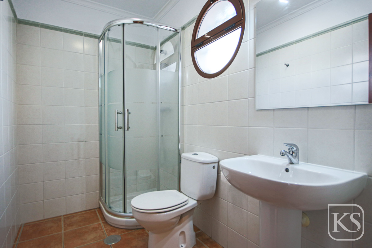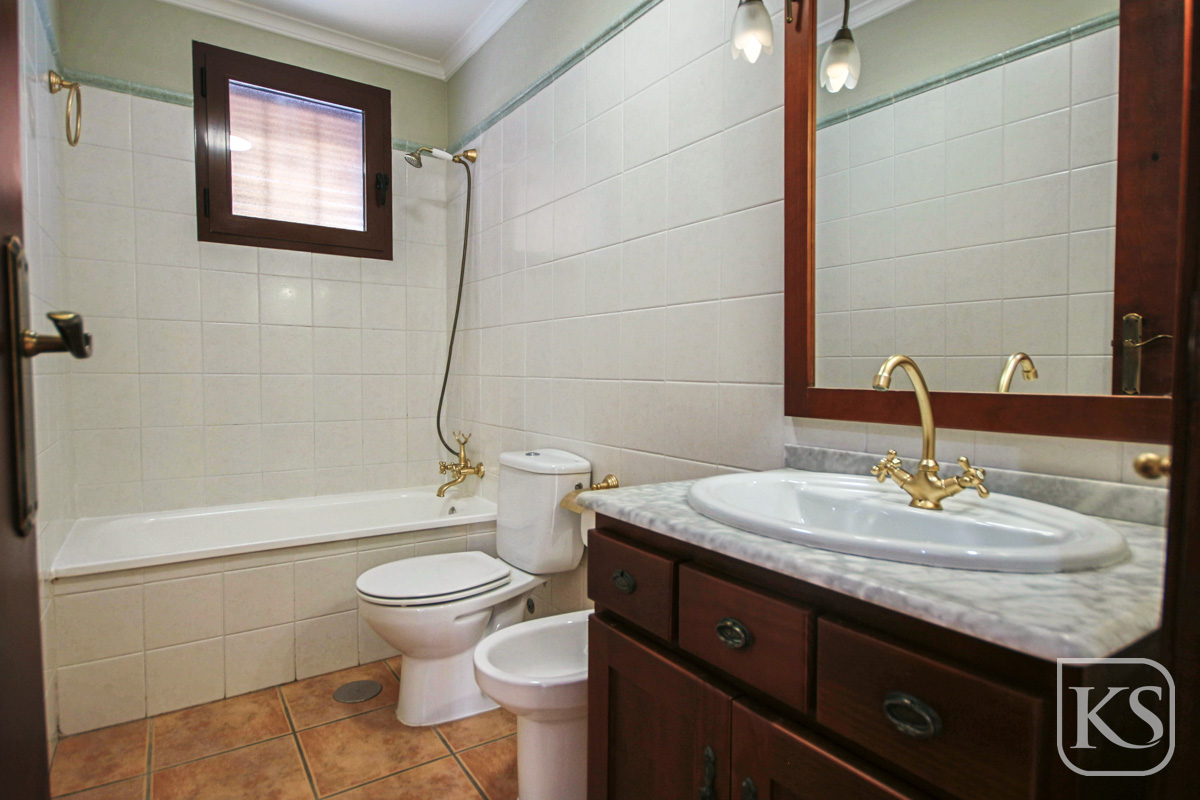 On the first floor, there are two further bedrooms connected by a large shared south-facing terrace, perfect for enjoying the sun throughout the day. A bathroom is conveniently positioned between the bedrooms.