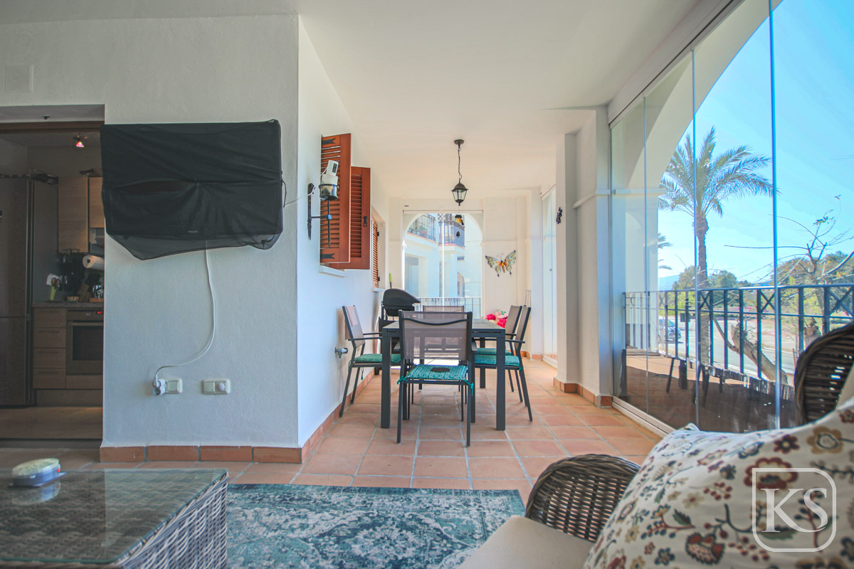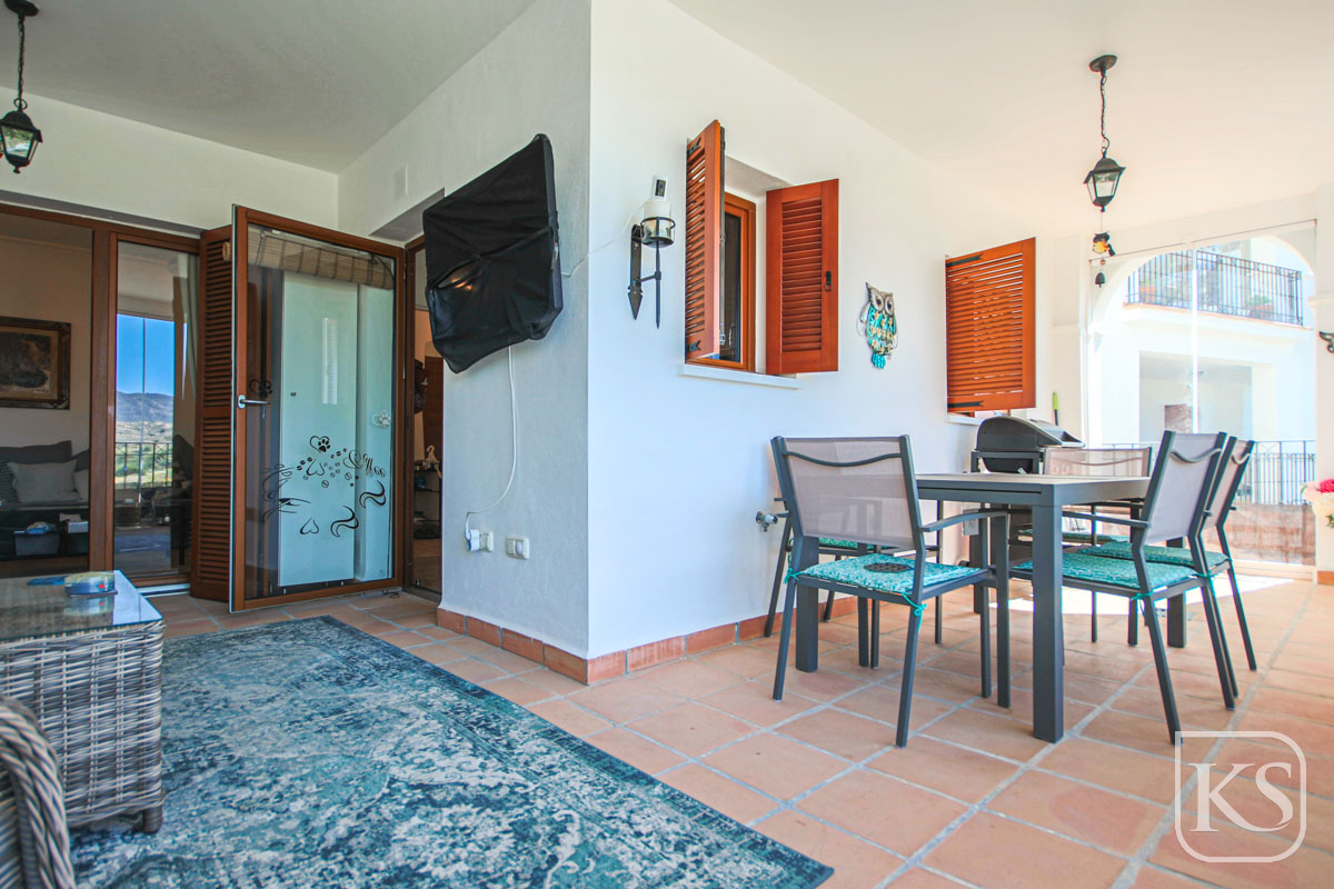 Keystyle Properties welcomes you to Casa Fe, a beautifully presented first-floor apartment located in the sought-after El Valle Golf Resort. This stylish and serene home offers breathtaking views of the mountains and the distant driving range, and its standout feature is a large, enclosed terrace where you can enjoy glorious sunsets and afternoon and evening sunshine. Whether you're relaxing in the cooler months or opening the glass curtains to let the summer breeze in, this property offers the perfect indoor-outdoor lifestyle all year round.