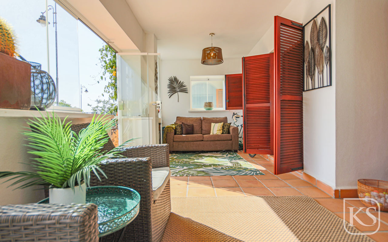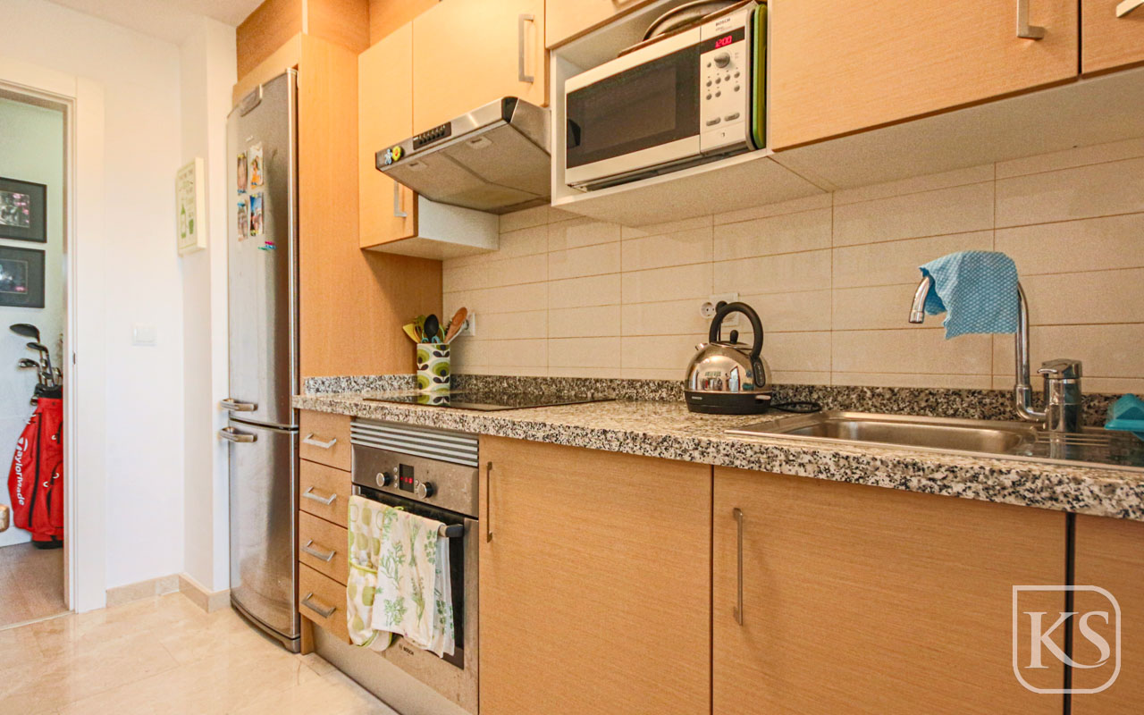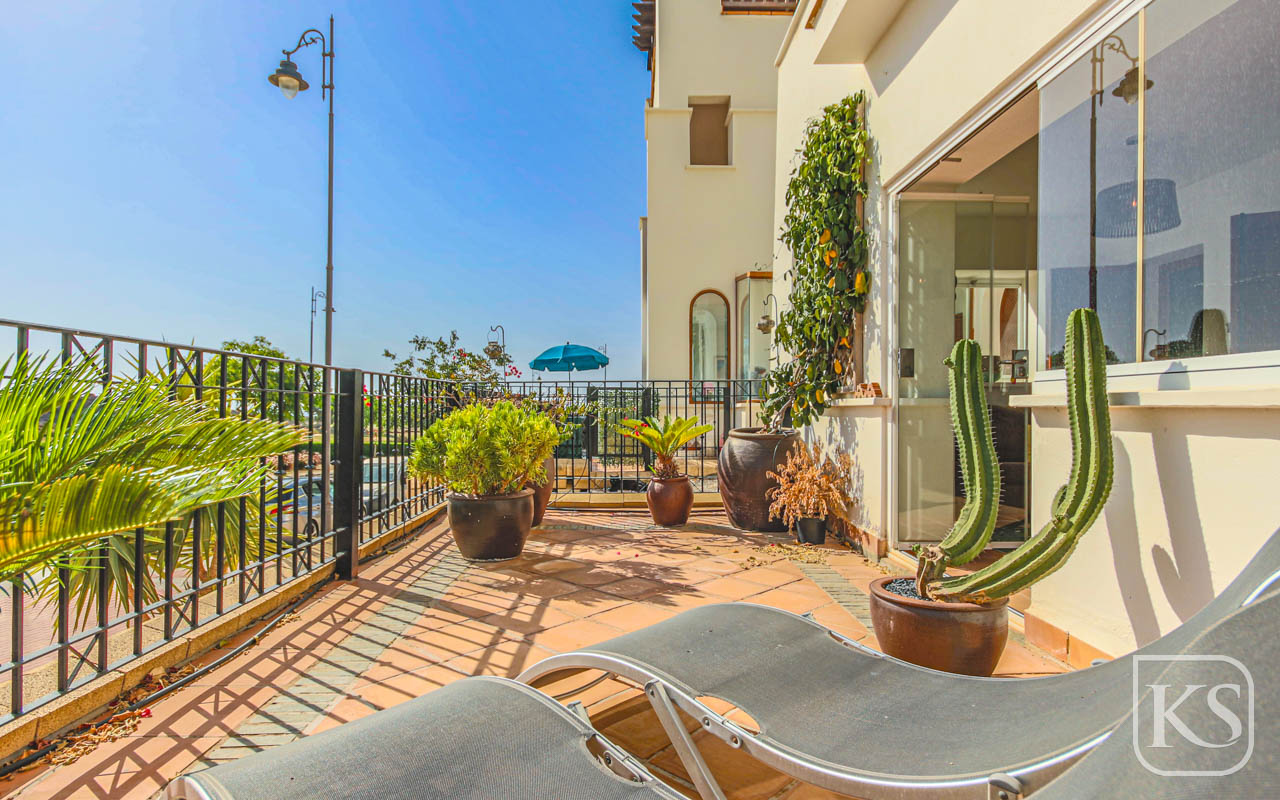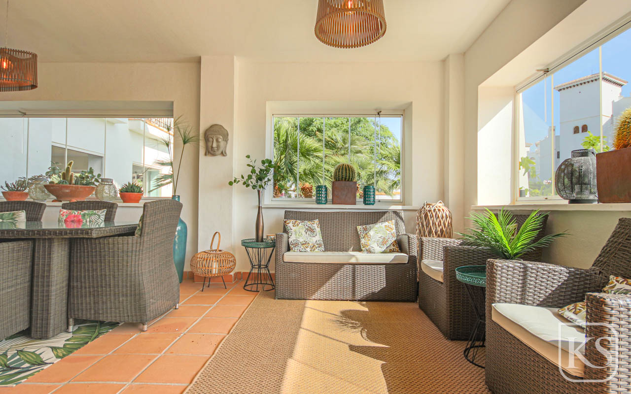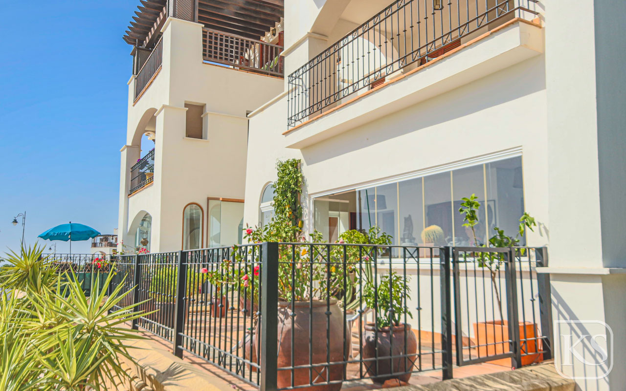 Keystyle Properties welcomes you to Casa Jay, a charming 2-bedroom, 2-bathroom ground floor apartment with stunning golf views on El Valle Golf Resort in Murcia. This beautiful property features a large L-shaped enclosed terrace with glass curtains, perfect for enjoying the sun year-round. The east-facing orientation ensures ample natural light, creating a bright and welcoming atmosphere.