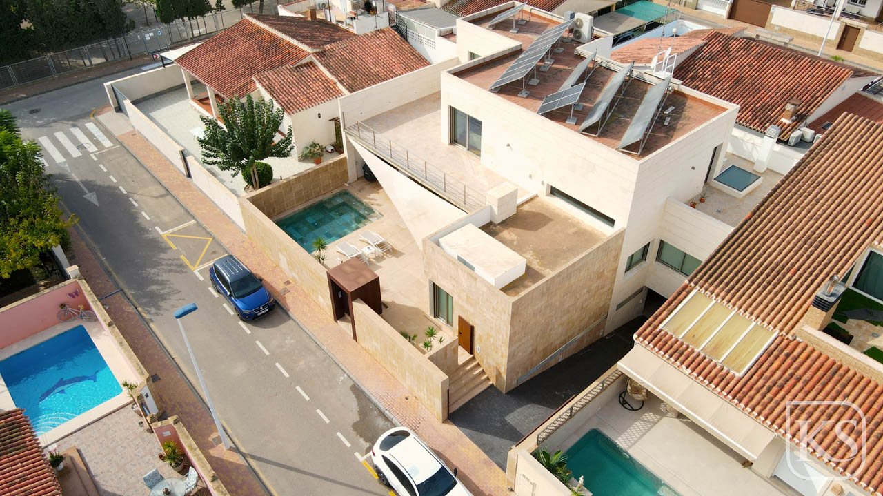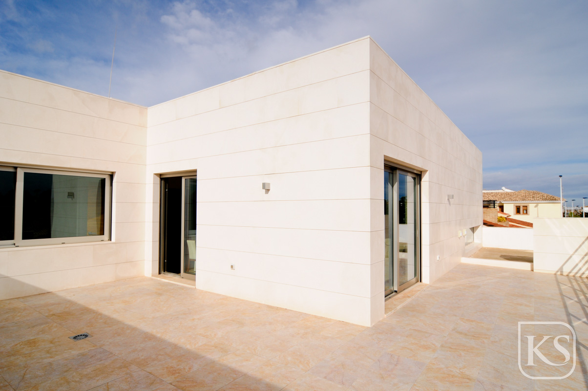 Keystyle Properties presents a truly exquisite and modern villa, Casa San Pedro, located in a sought-after residential area of San Pedro del Pinatar. This stunning property is just a short distance from the main town center and offers easy access to the AP7 motorway, providing both convenience and comfort for its residents.