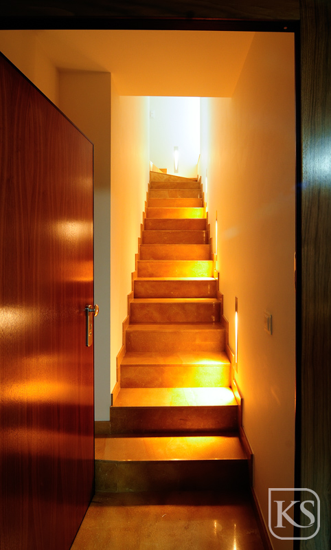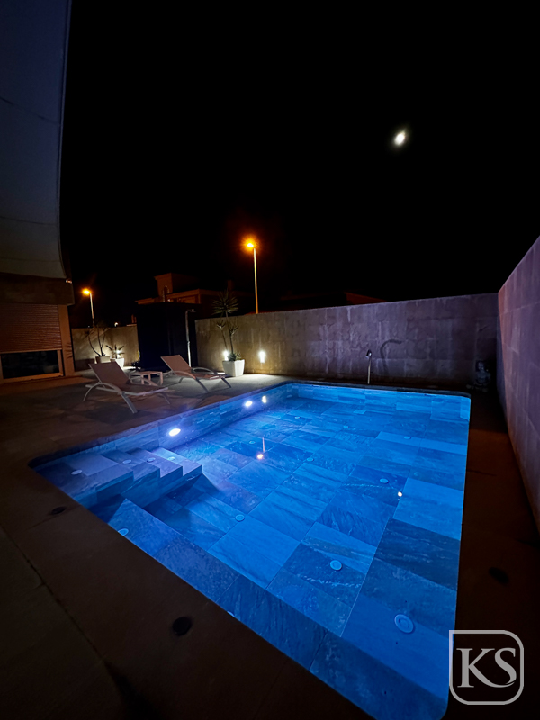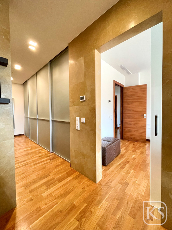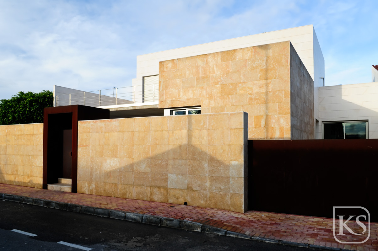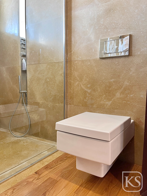 Casa San Pedro boasts a spacious layout with a total villa size of 325 m² and an additional 70 m² basement, all set on a generous 400 m² plot. The villa is crafted using the finest materials, including ‘flamed amber stone’ and ‘capri cream stone’ on the facade. Inside, the luxurious finishes continue with oak parquet flooring throughout and natural honed Ámbar and travertine stone in the bathrooms.