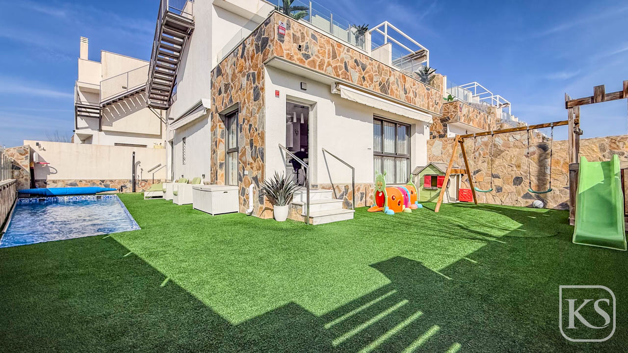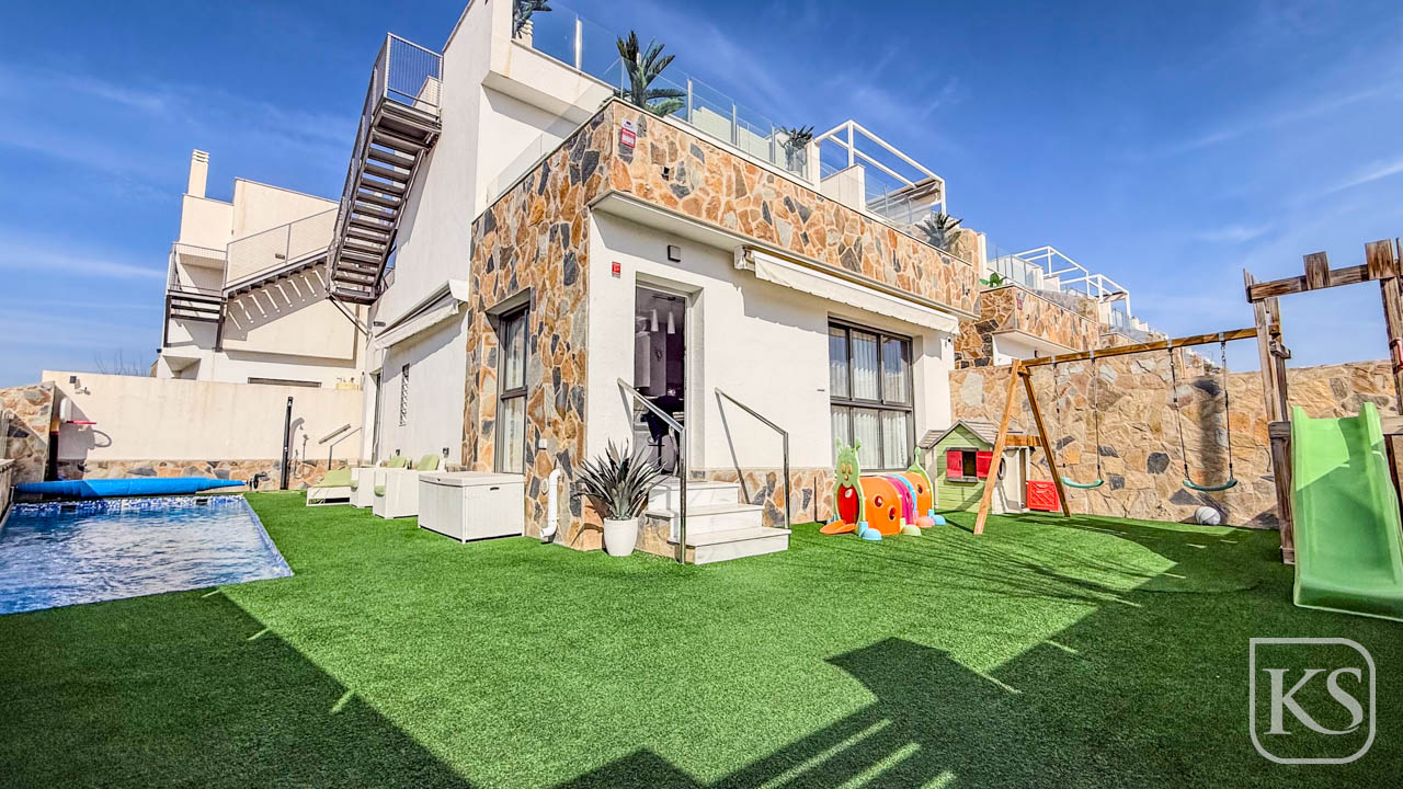 Keystyle Properties welcomes you to Casa Venus, a stunning four-bedroom, three-bathroom villa located just 600 meters from the golden beaches of Los Alcazares. Situated on a south-facing corner plot, this fully furnished home offers a perfect blend of modern elegance, space, and sun-soaked outdoor living.