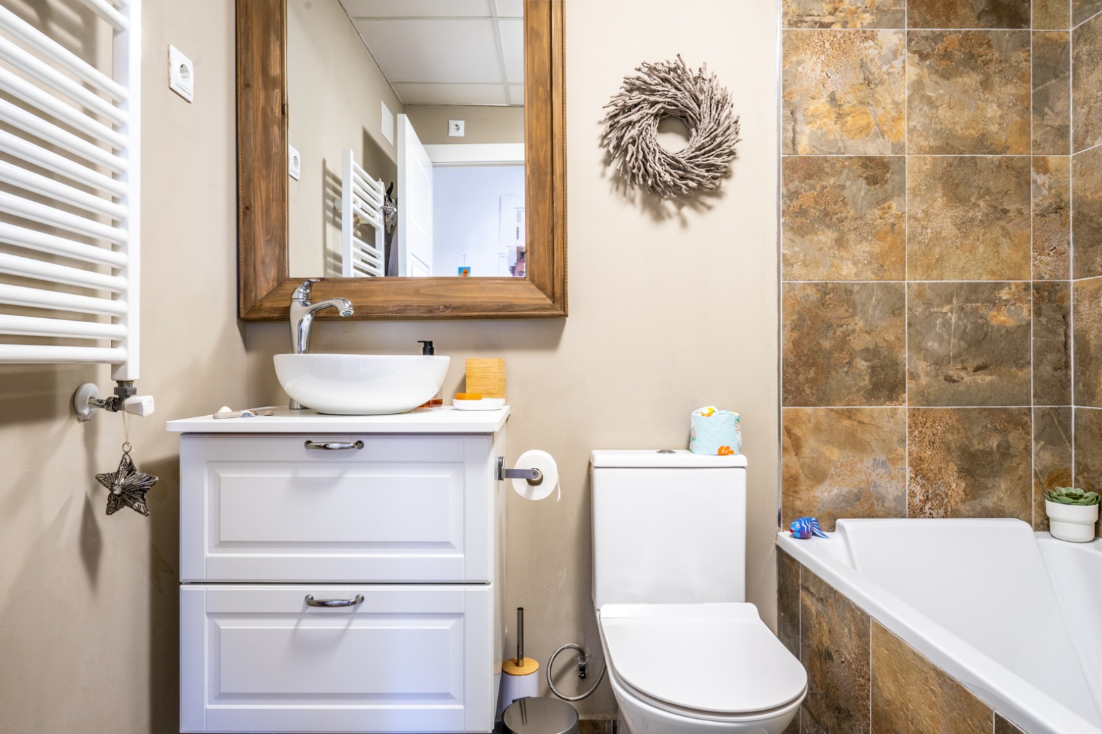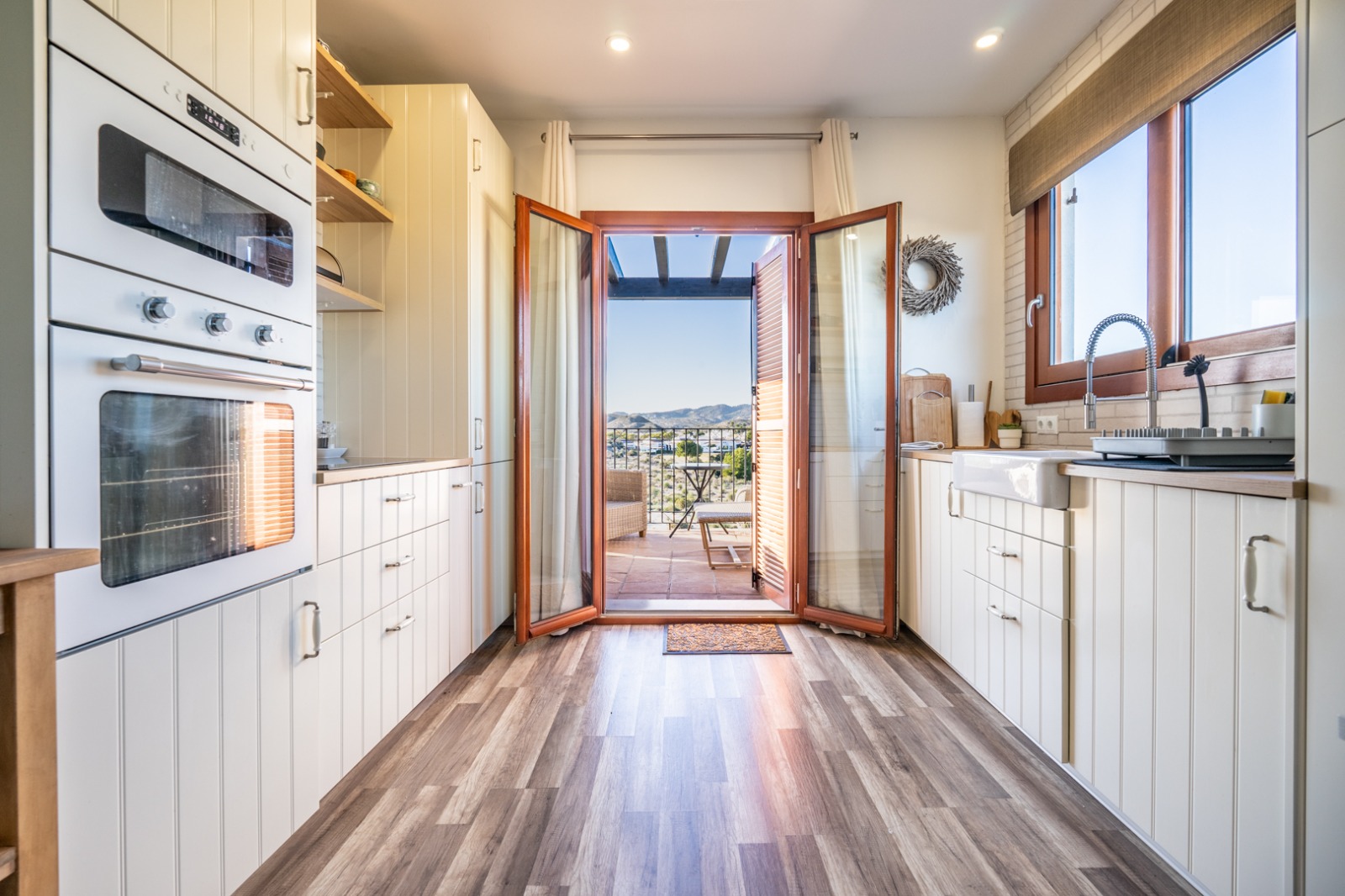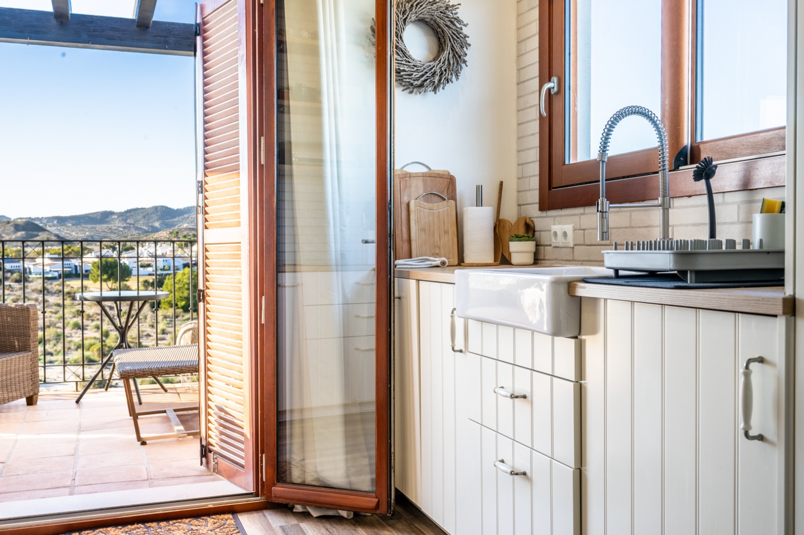 - Kitchen: The stylish cream wooden kitchen features a charming backsplash and direct access to the terrace. Its thoughtful design makes it a perfect space for preparing meals and entertaining.