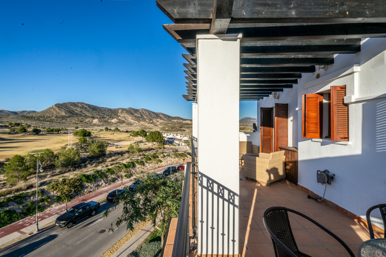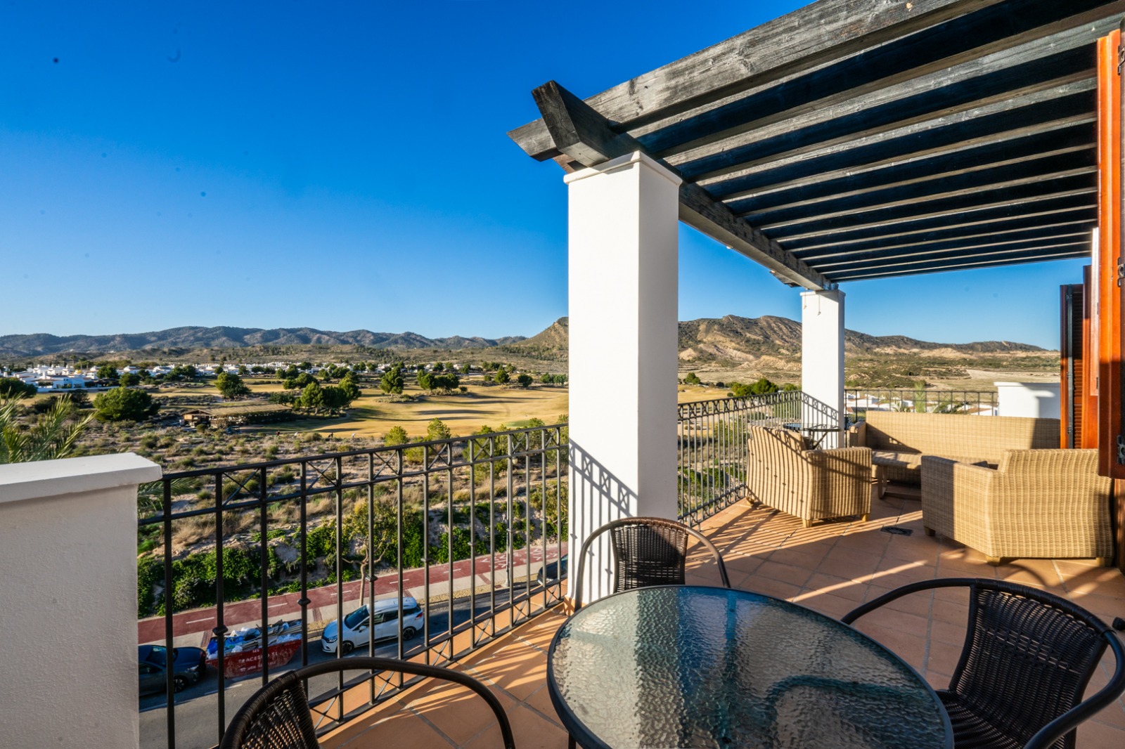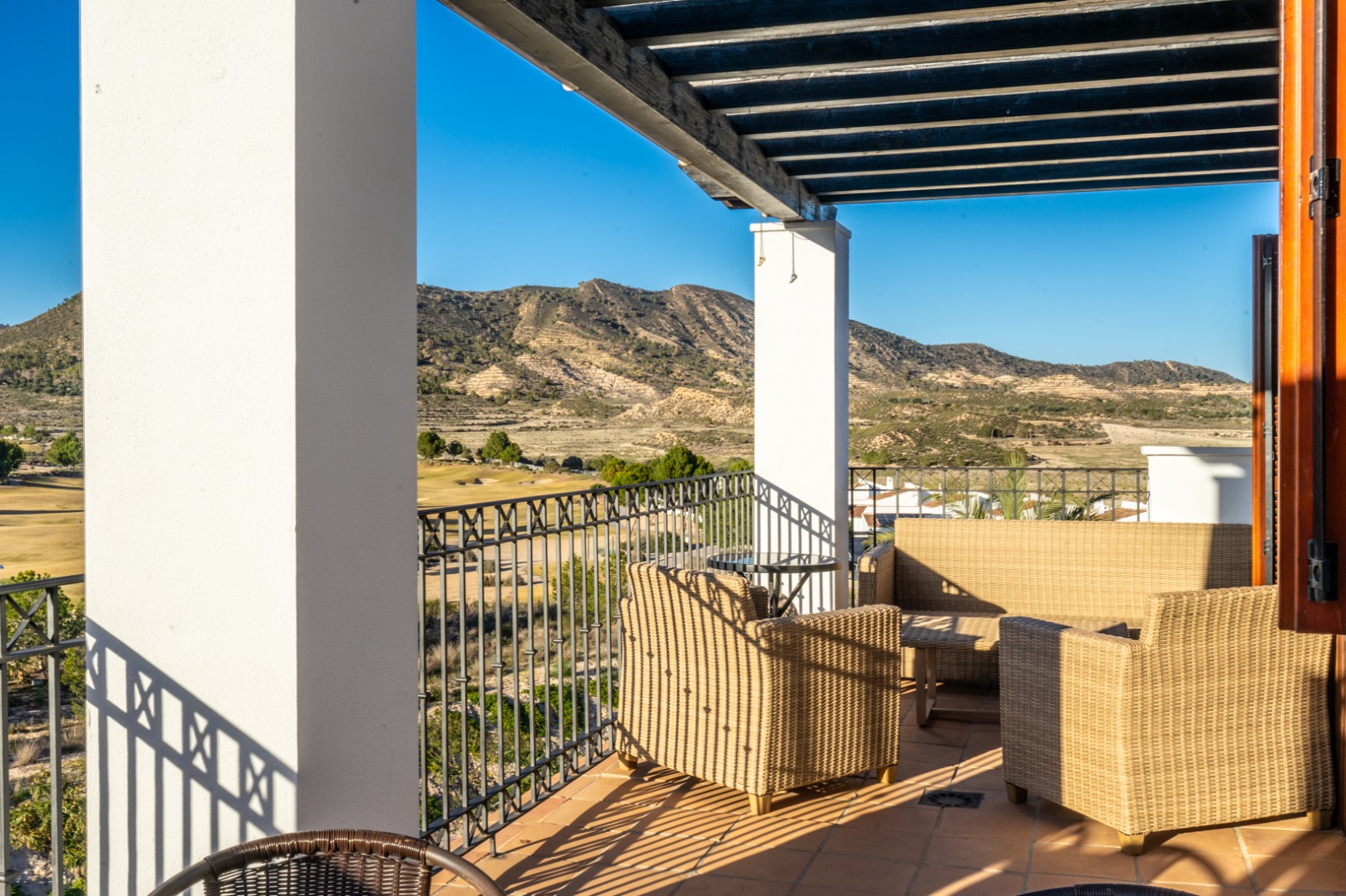 - Terrace: The terrace provides panoramic views of the golf course and surrounding mountains, ideal for enjoying gatherings with sun throughout the afternoon and evening, along with the stunning sunsets.