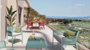 Keystyle Properties welcomes you to El Valle Residences #5, a modern ground-floor apartment located frontline to the golf course within the prestigious El Valle Golf Resort in Murcia. This beautifully designed home combines contemporary Mediterranean architecture with high-quality finishes, generous outdoor space, and abundant natural light, creating an ideal property for permanent living, a holiday home, or a smart investment.