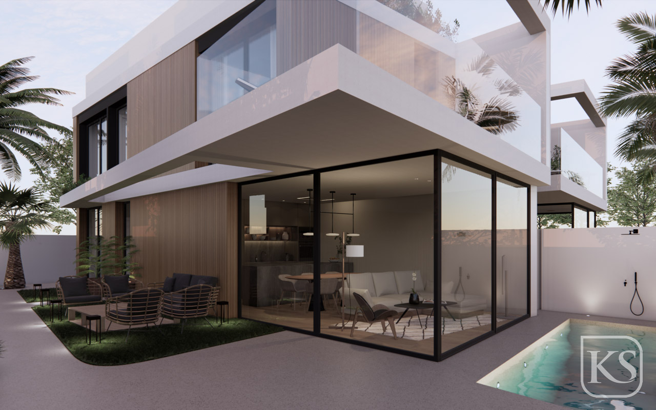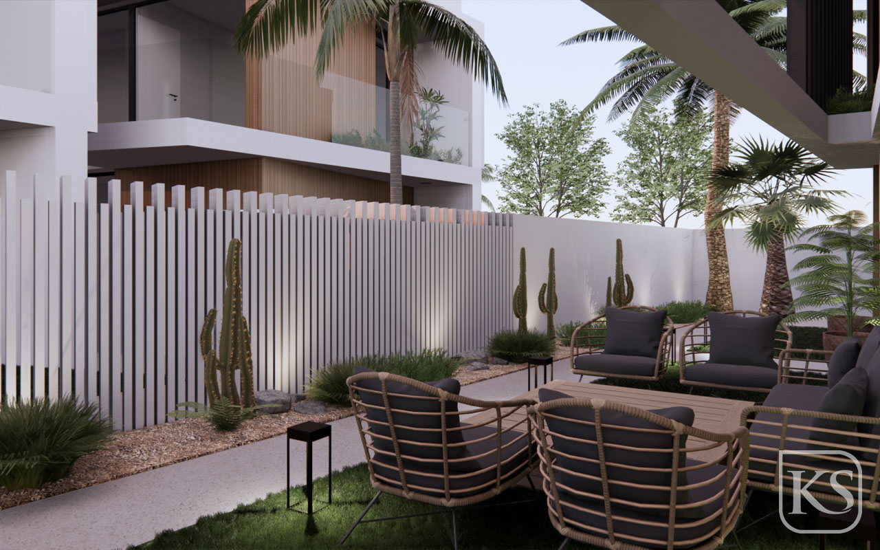 • Private Garden with Pool: Each villa includes a private garden with a refreshing pool, providing a serene space for relaxation. A dedicated parking space is also included.