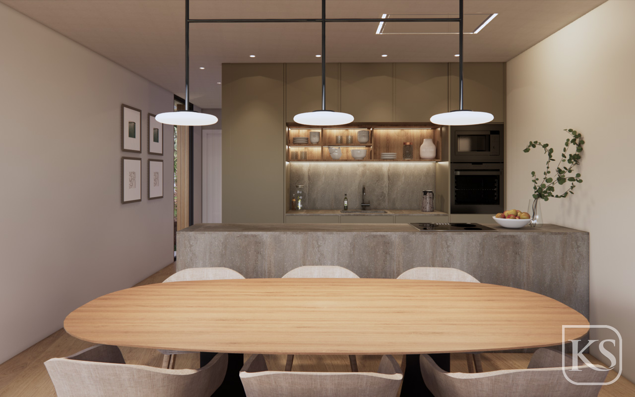 • Open Plan Living Area: The spacious living room seamlessly integrates with a contemporary open kitchen, creating a perfect setting for entertaining and family gatherings.