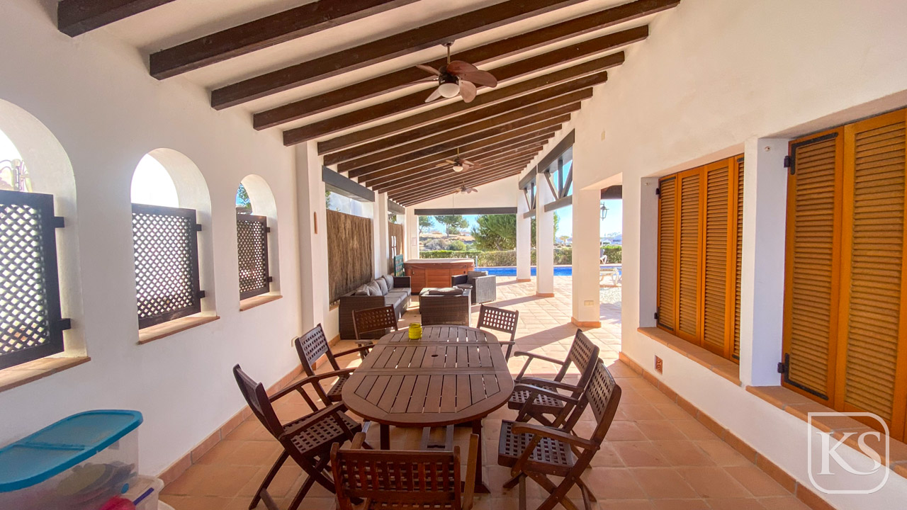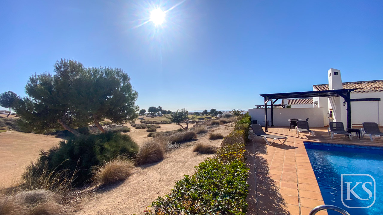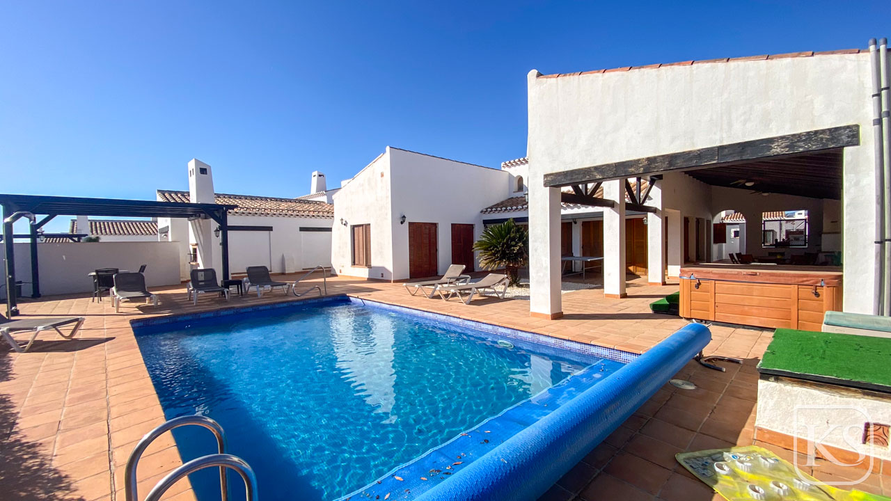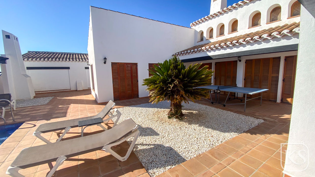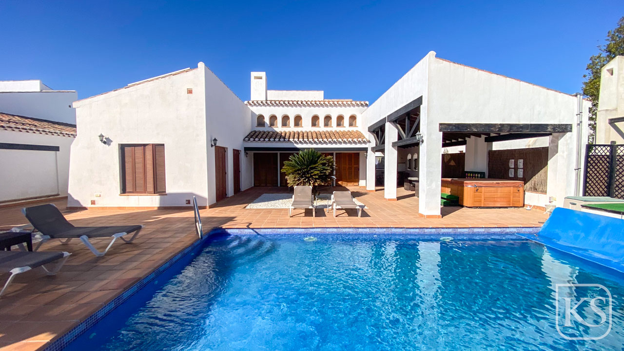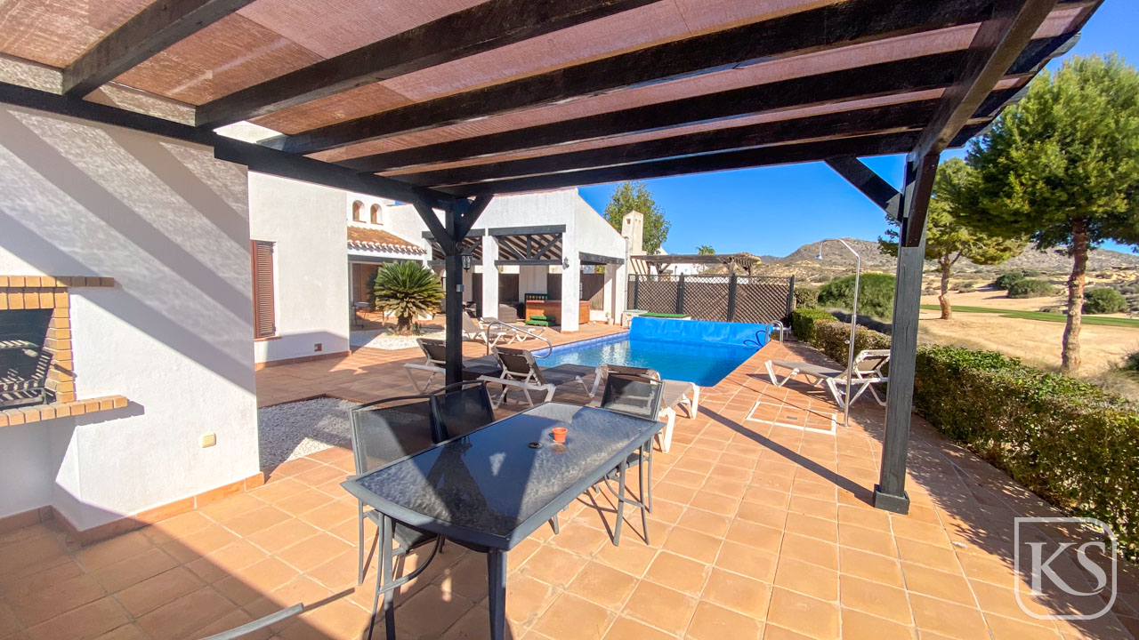 Outside, the villa impresses with a large swimming pool, two BBQ areas, and a covered terrace for alfresco dining, all set against the backdrop of panoramic golf course views and partial vistas of the Mar Menor. The property also offers plenty of off-road parking, with the potential for a garage conversion, enhancing its practicality and value.