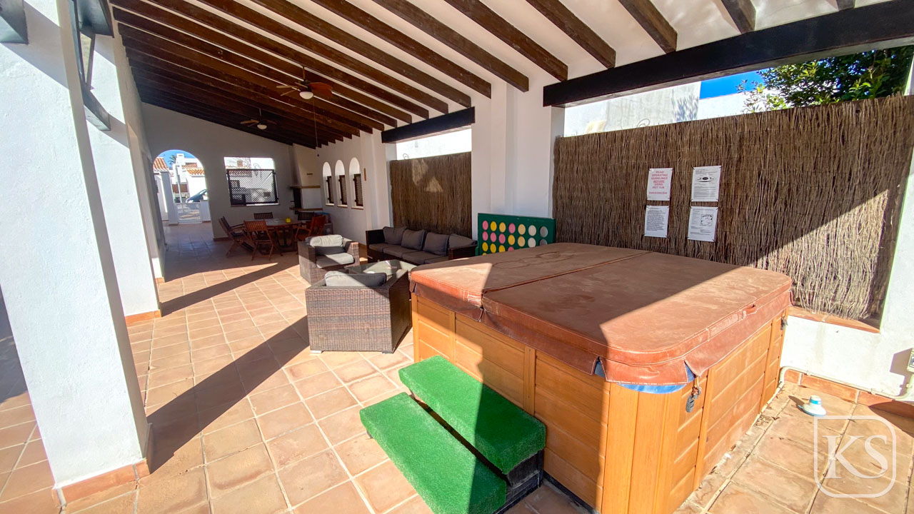 Step into luxury living as this villa comes fully furnished, complete with a soothing hot tub and eco-friendly solar panels. The interior exudes elegance with marble flooring, a fully fitted kitchen, and generously proportioned bedrooms. The master bedroom indulges with its own walk-in wardrobe and en suite bathroom, providing a private sanctuary within the home.