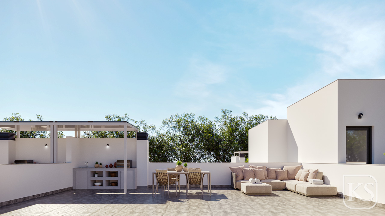Efficiency is paramount at Residencial Amanecer II, with features such as highly energy-efficient thermal insulation, a domestic hot water system with adjustable electric heater, and 1.2 Kw photovoltaic solar panels. Pre-installation for air conditioning and electric car chargers further enhances the sustainability and convenience of these exceptional residences.