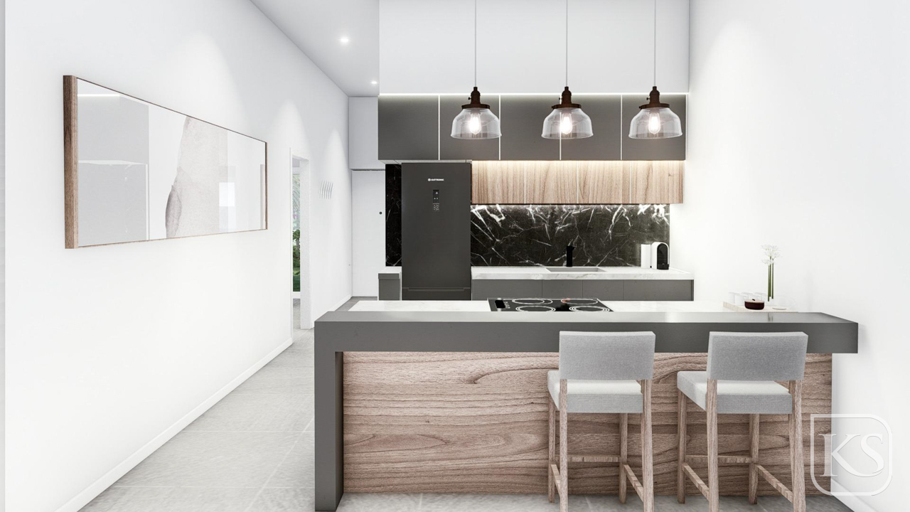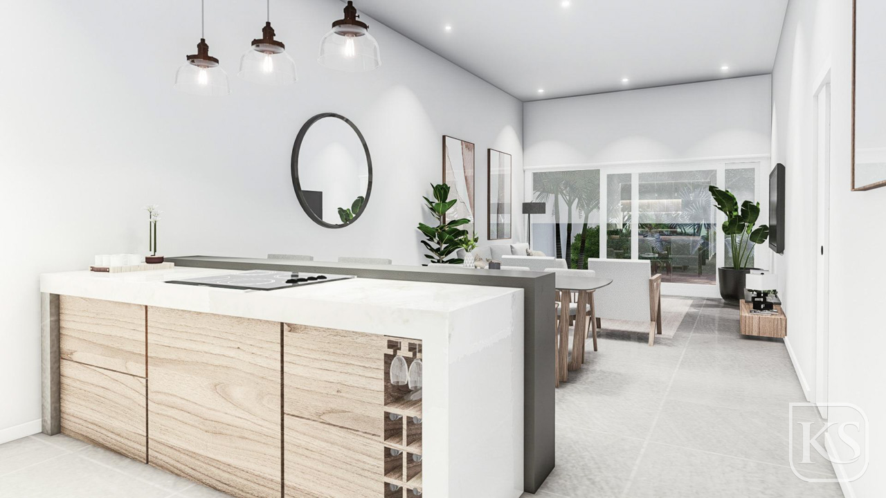 Open Plan Living: The heart of each villa is an open plan kitchen that merges effortlessly with the living room, creating a welcoming atmosphere perfect for family gatherings and social occasions.