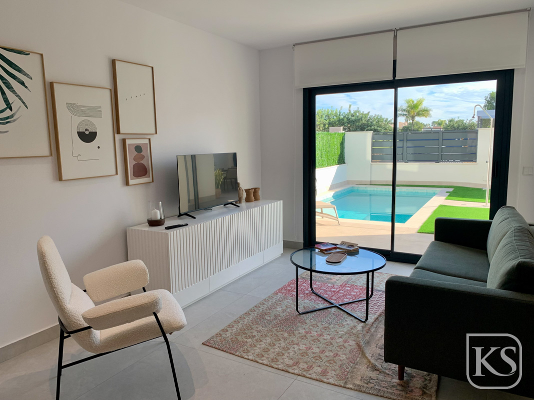 Keystyle Properties welcomes you to these exclusive new-build villas in the prestigious Roda Golf, Murcia. Offering the perfect combination of luxury, comfort, and convenience, these modern homes provide an exceptional lifestyle for golf enthusiasts and beach lovers alike. Nestled in a tranquil setting with stunning views of the lush green fairways, these villas are designed for those who seek a serene yet vibrant living environment.