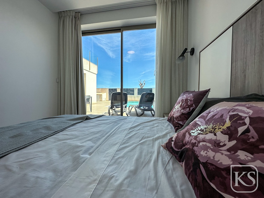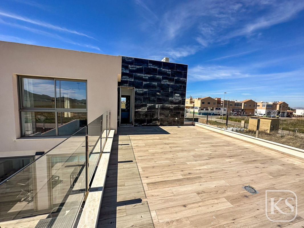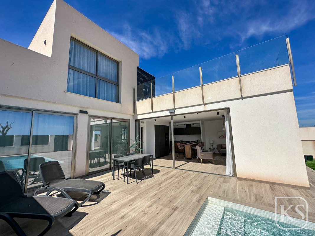 Keystyle Properties welcomes you to this stunning contemporary semi-detached villa in Los Belones, Mar Menor. Offering breathtaking sea and coastal views, this luxury new-build property provides the perfect combination of modern design, spacious living areas, and high-end features. Set back from the main town, this home ensures privacy while remaining conveniently close to essential amenities and the beautiful beaches of the Mar Menor and the Mediterranean Sea.