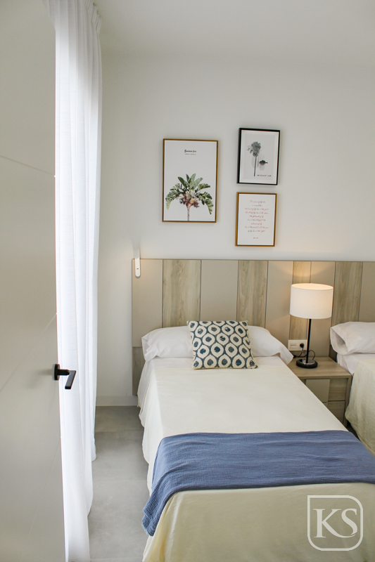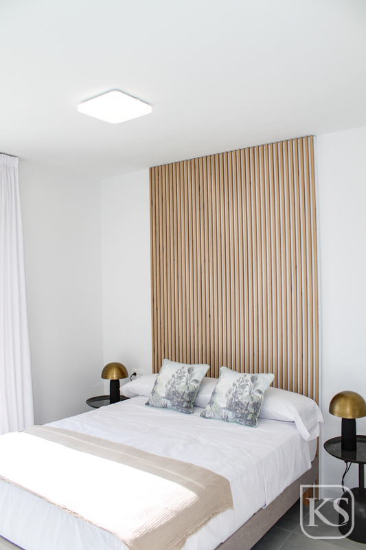 - Smooth plaster ceilings with integrated LED lighting.