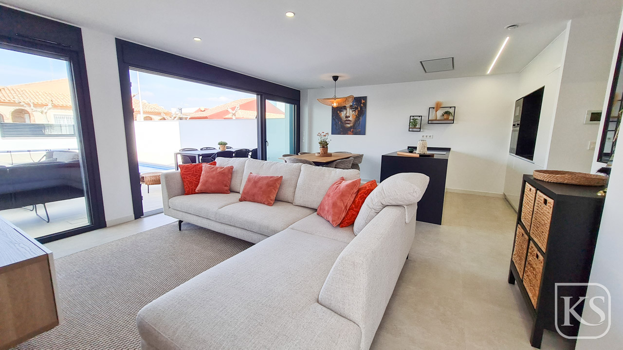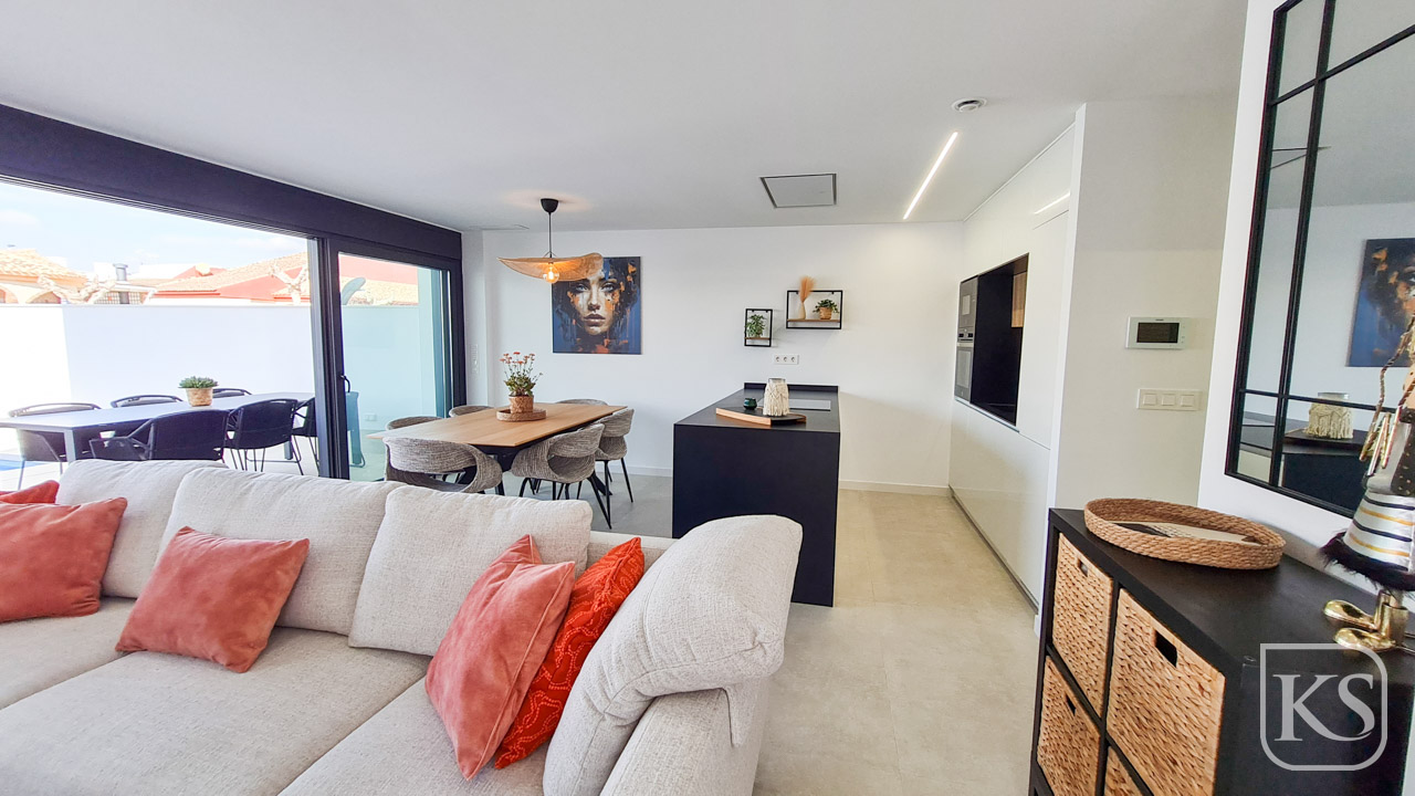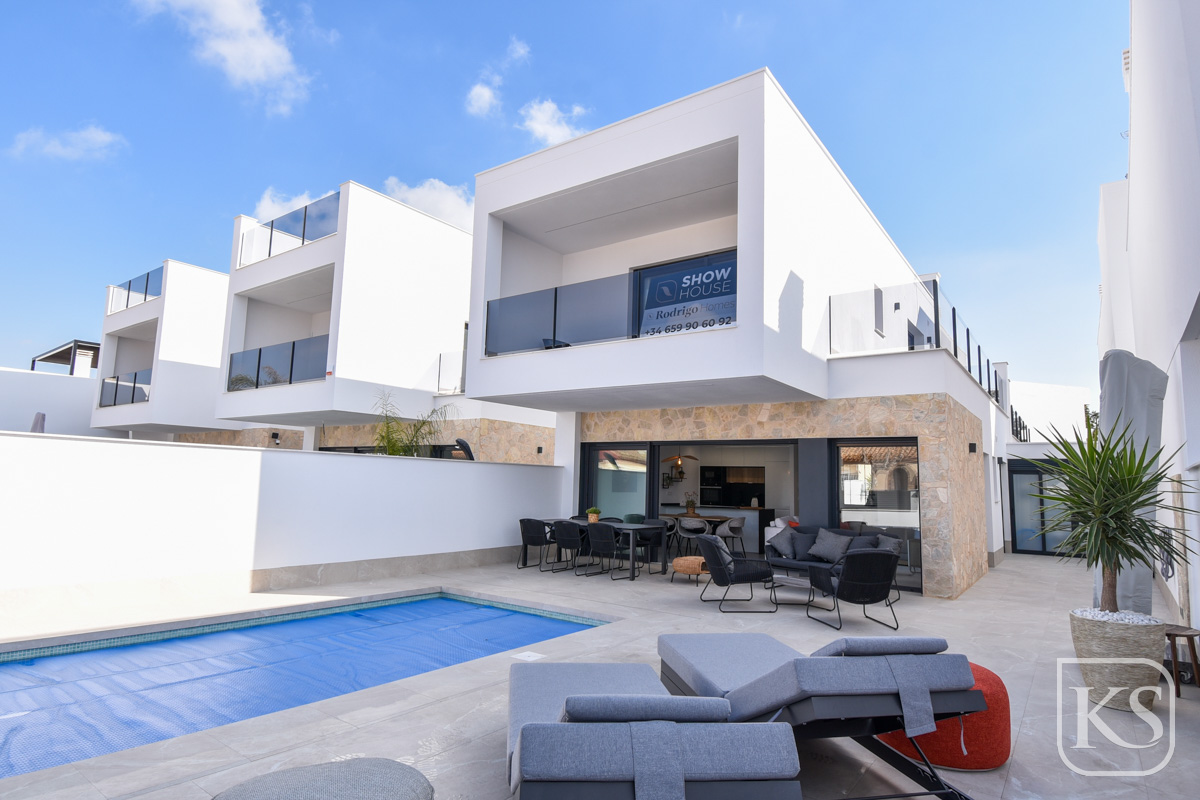 Keystyle Properties  welcomes you to Villa Altos de San Pedro—a sophisticated haven of modernity and comfort nestled in the sought-after town of San Pedro del Pinatar. This exclusive second phase features 12 semi-detached villas, each boasting a minimalist design, premium finishes, and a private pool. With 3 spacious bedrooms, 3 bathrooms, and ample outdoor living areas, these villas are perfect for those who value tranquility, style, and luxury.
