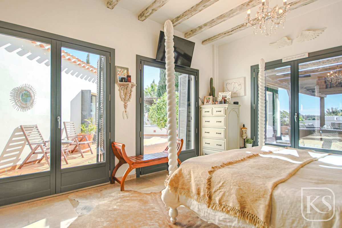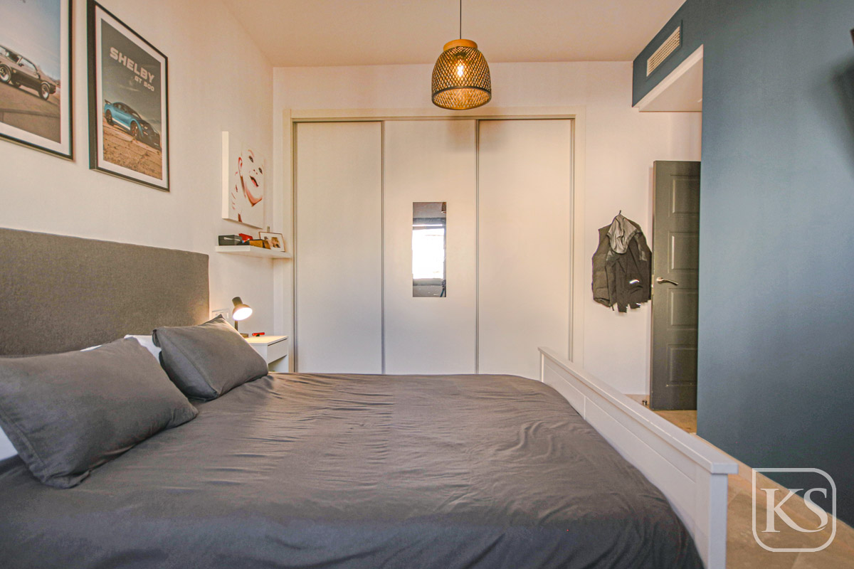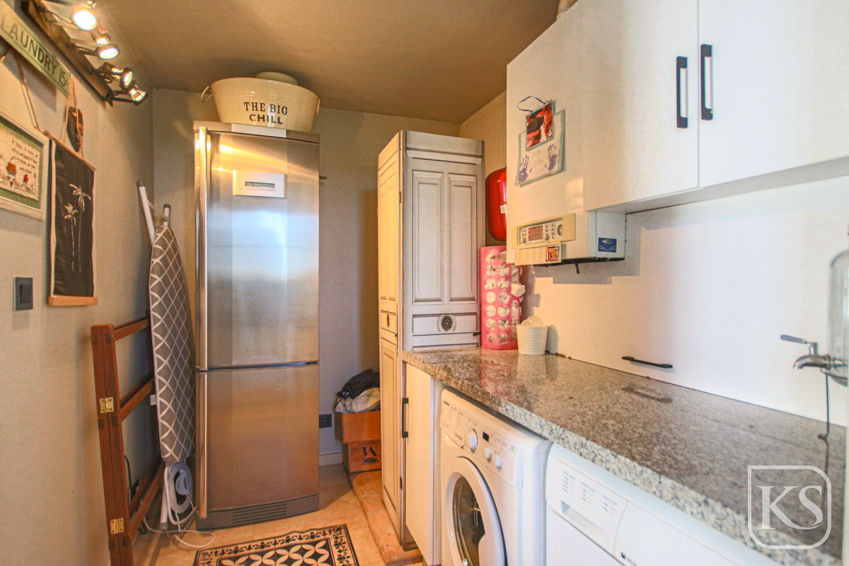 The villa's generous layout includes two elegant master suites, each offering serene views of the beautifully landscaped gardens and the shimmering private pool. Complementing the comfortable living space are large, fully-fitted wardrobes, a dedicated cinema room for movie enthusiasts, and an additional utility room for added convenience. With air conditioning and central heating, this home ensures year-round comfort for you and your family.