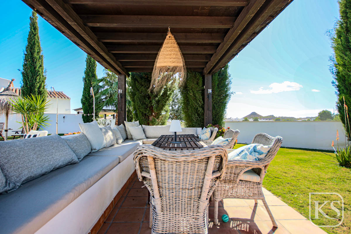 Discover the epitome of luxury living in this magnificent 5-bedroom, 4.5-bathroom villa, nestled within the prestigious El Valle Golf Resort. Priced at €995,000, Villa Arabesque occupies a sprawling 1,670 m² corner plot, boasting panoramic golf, mountain, and countryside views. Designed for both relaxation and entertainment, this 400 m² property features a newly renovated kitchen, expansive terrace, and a sumptuous solarium that invites you to bask in the sun while enjoying breathtaking vistas.
