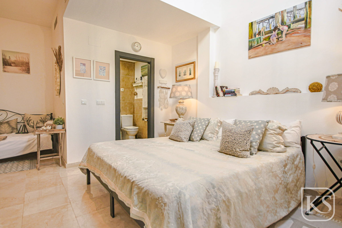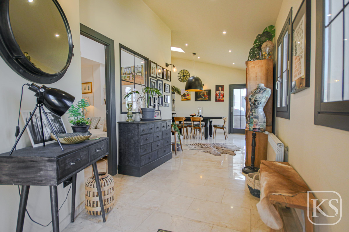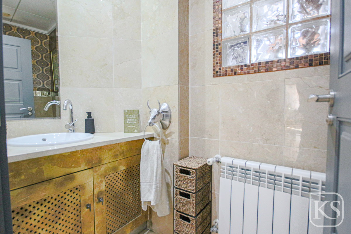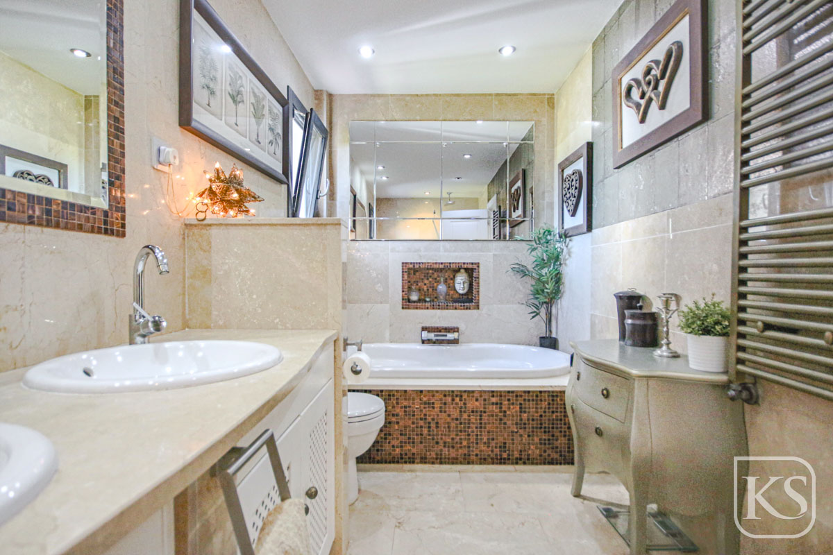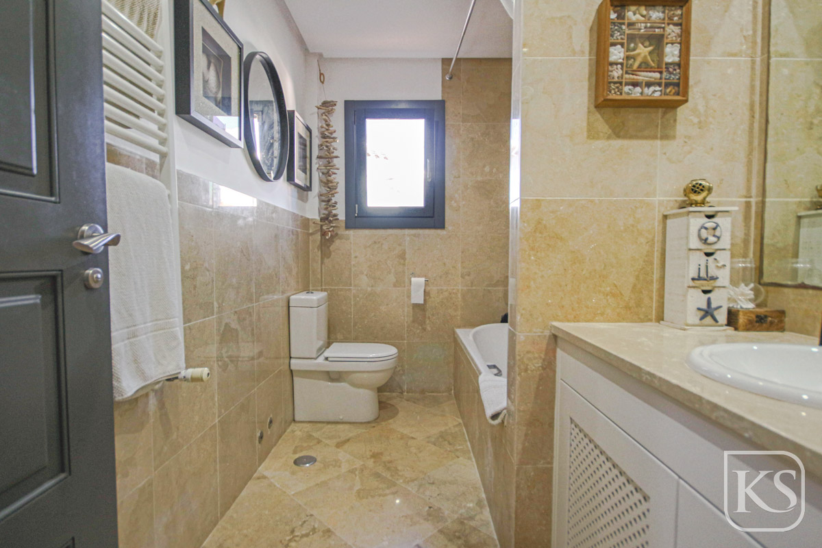 The newly renovated kitchen offers a modern, open-plan layout, perfect for both family life and entertaining guests. The bright and airy living area flows seamlessly to the expansive terrace and private swimming pool, ideal for al fresco dining and sun-soaked afternoons. For entertainment, the villa includes a dedicated cinema room, while a utility room adds practicality to the elegant design.