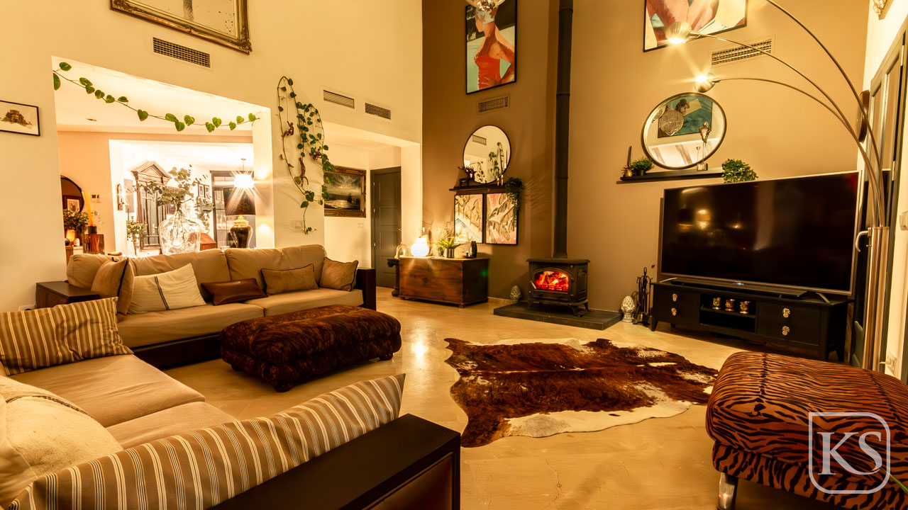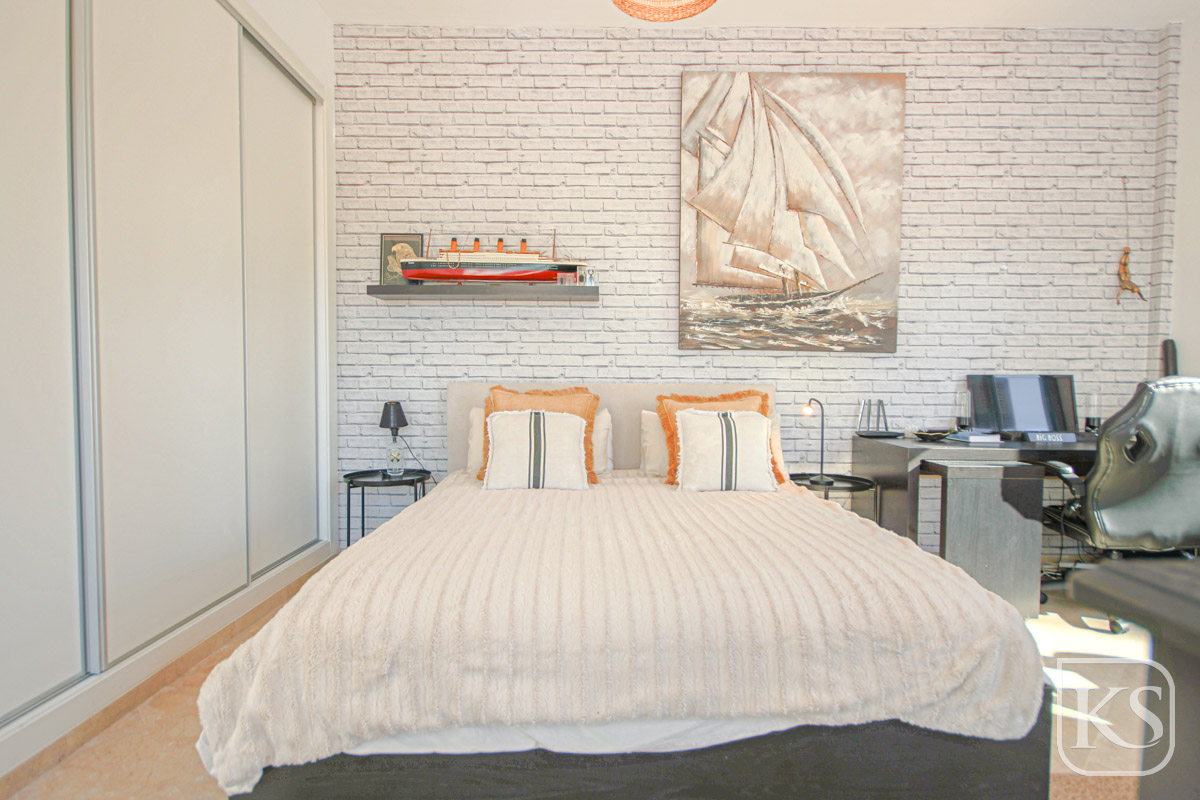 Villa Arabesque has been thoughtfully designed to cater to luxury living. The villa features five spacious bedrooms and four and a half bathrooms, including two elegant master suites that open onto serene garden views. Each bedroom comes with large, fully fitted wardrobes, ensuring ample storage and comfort.