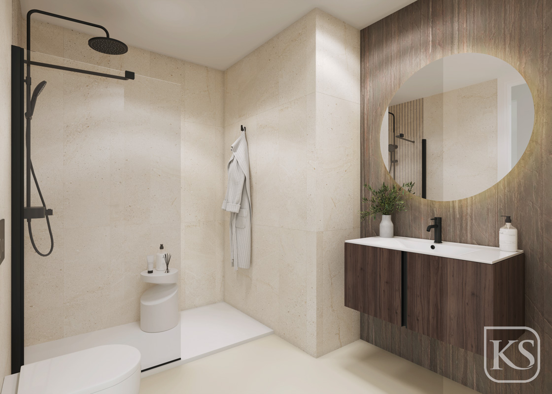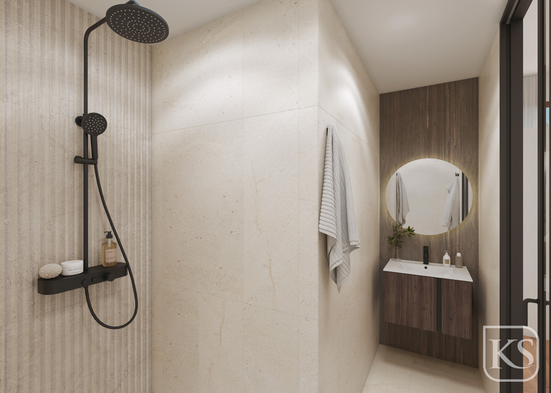 Interiors: Equipped with Porcelanosa’s luxury ceramic tiles, natural stone finishes in bathrooms, and high-end fixtures.