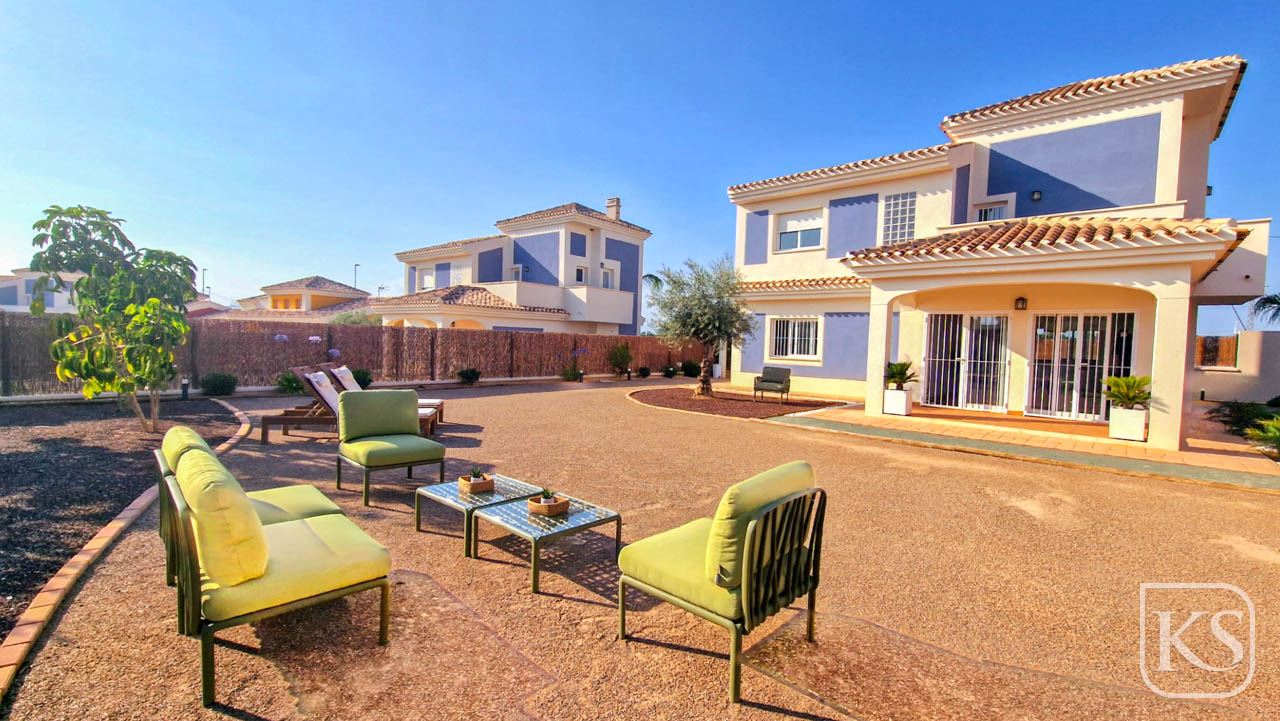 Villa Iris, located in Lorca, Murcia, offers a spacious and comfortable living space spread across two floors. With three bedrooms and three bathrooms, this property provides ample accommodation for a family or individuals seeking a relaxed Mediterranean lifestyle.