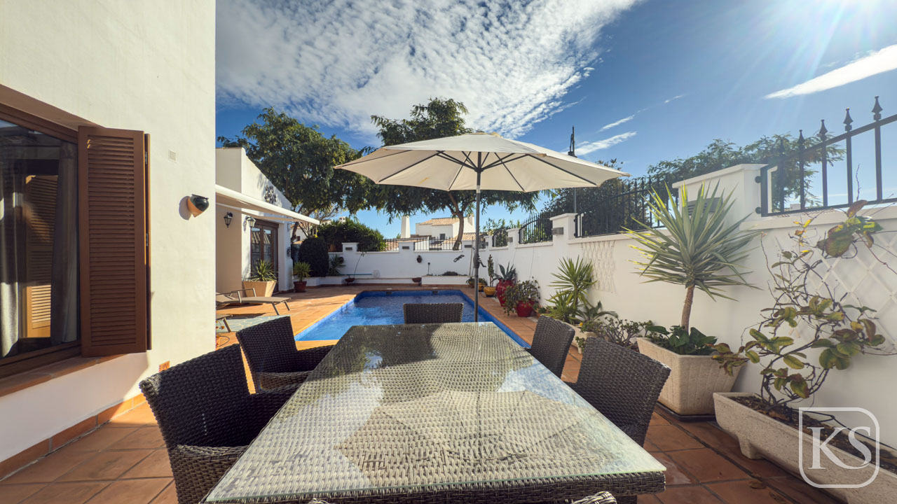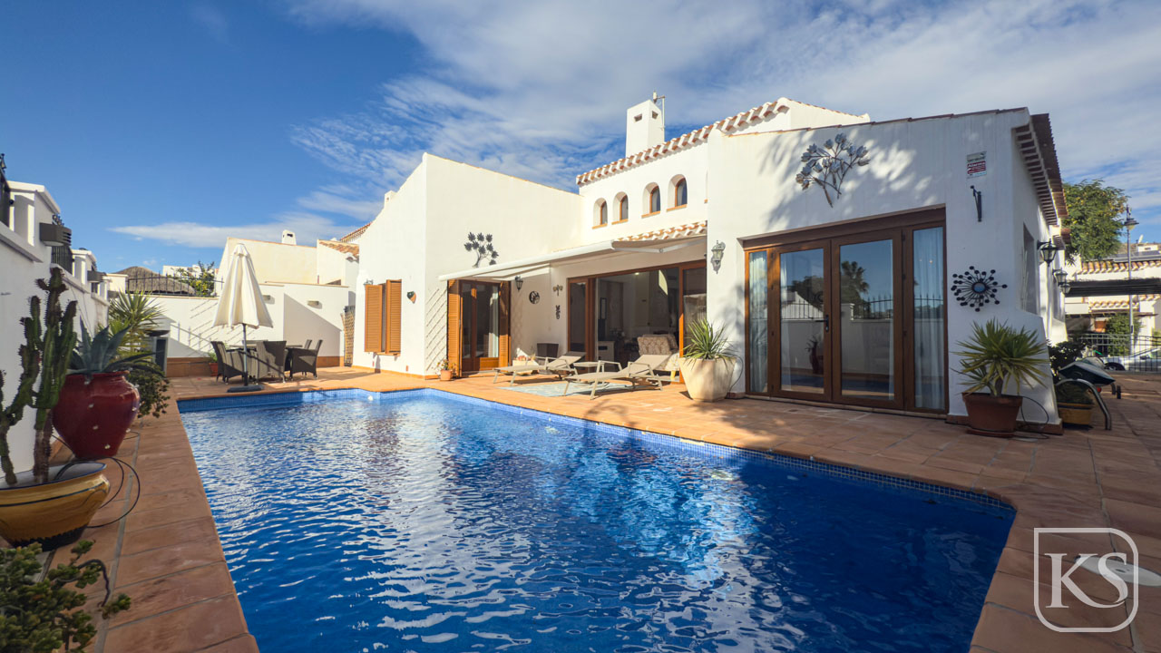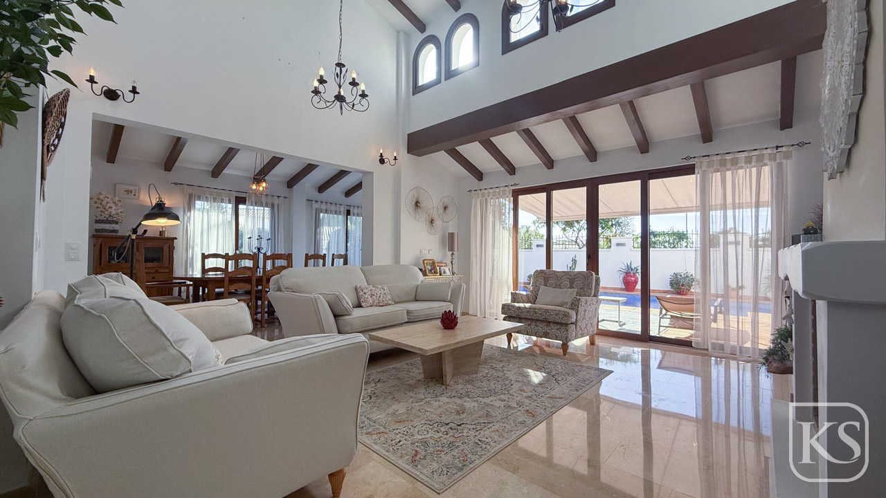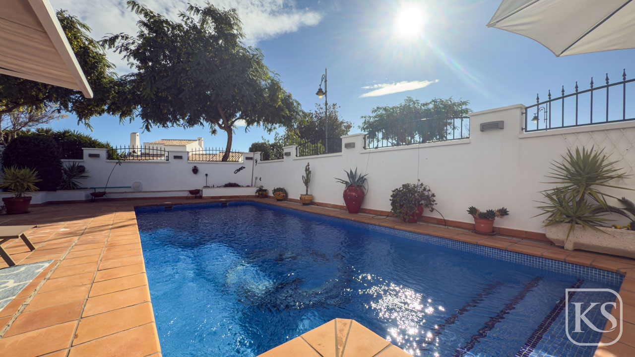 Keystyle Properties welcomes you to Villa Jasmine—a beautifully designed and extensively renovated 4-bedroom, 3-bathroom villa located on the prestigious El Valle Golf Resort. This south-facing villa combines modern elegance with thoughtful functionality, offering ample space, privacy, and an exceptional indoor-outdoor lifestyle.
