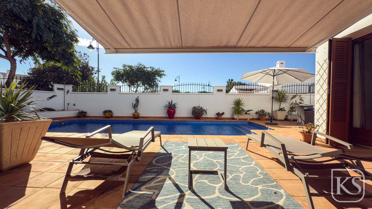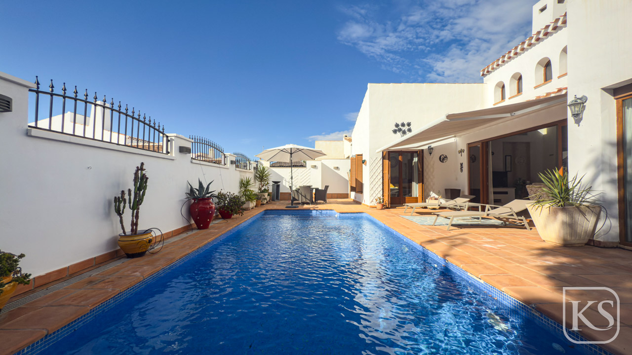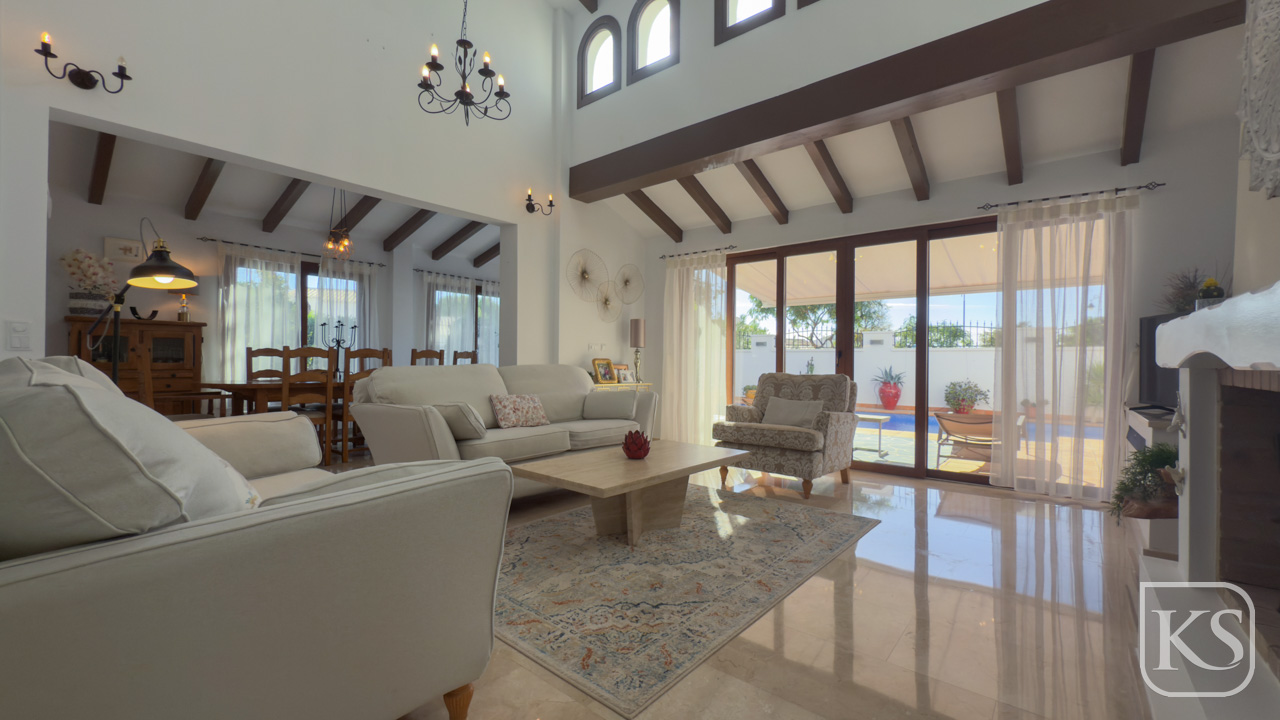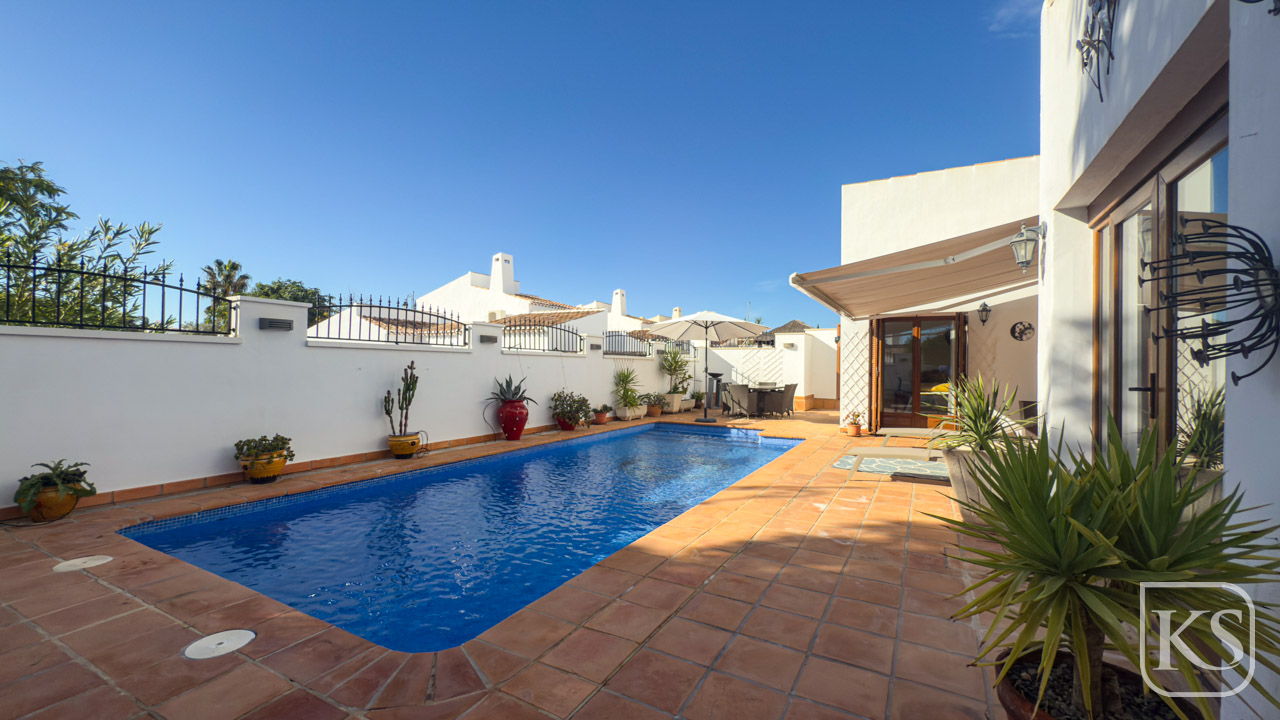 Keystyle Properties welcomes you to Villa Jasmine—a beautifully designed and extensively renovated 4-bedroom, 3-bathroom villa located on the prestigious El Valle Golf Resort. This south-facing villa combines modern elegance with thoughtful functionality, offering ample space, privacy, and an exceptional indoor-outdoor lifestyle.