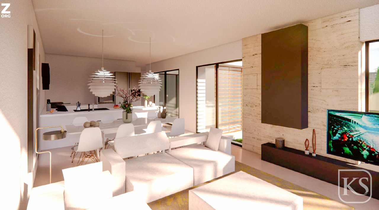 Sophisticated Finishes: The villa exudes elegance with its reinforced concrete foundation, ceramic brick enclosures, and facades adorned with single-layer mortar and ceramic cladding. Interior finishes include smooth white paint, lacquered doors, and sleek aluminum exterior carpentry with double glazing.