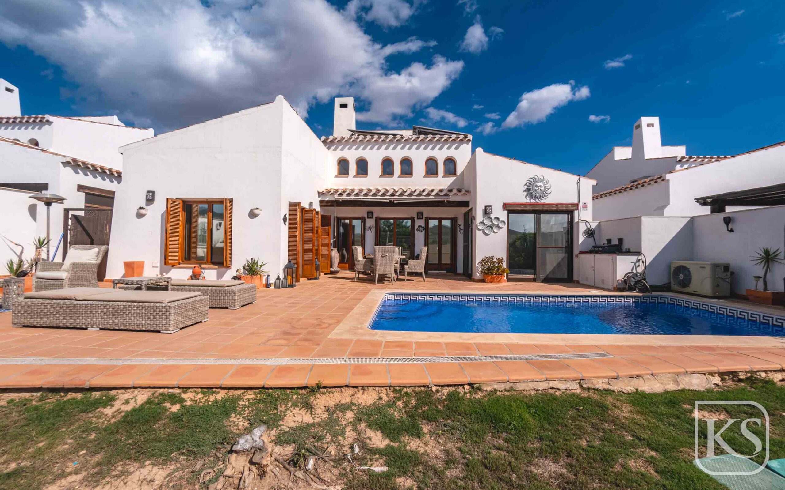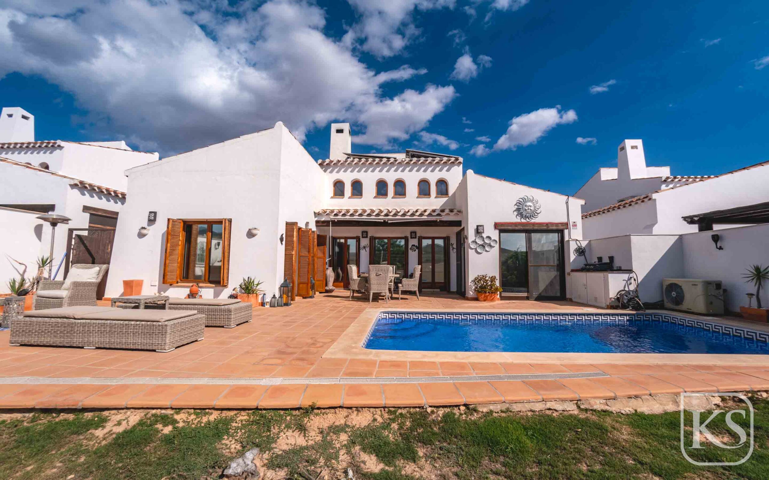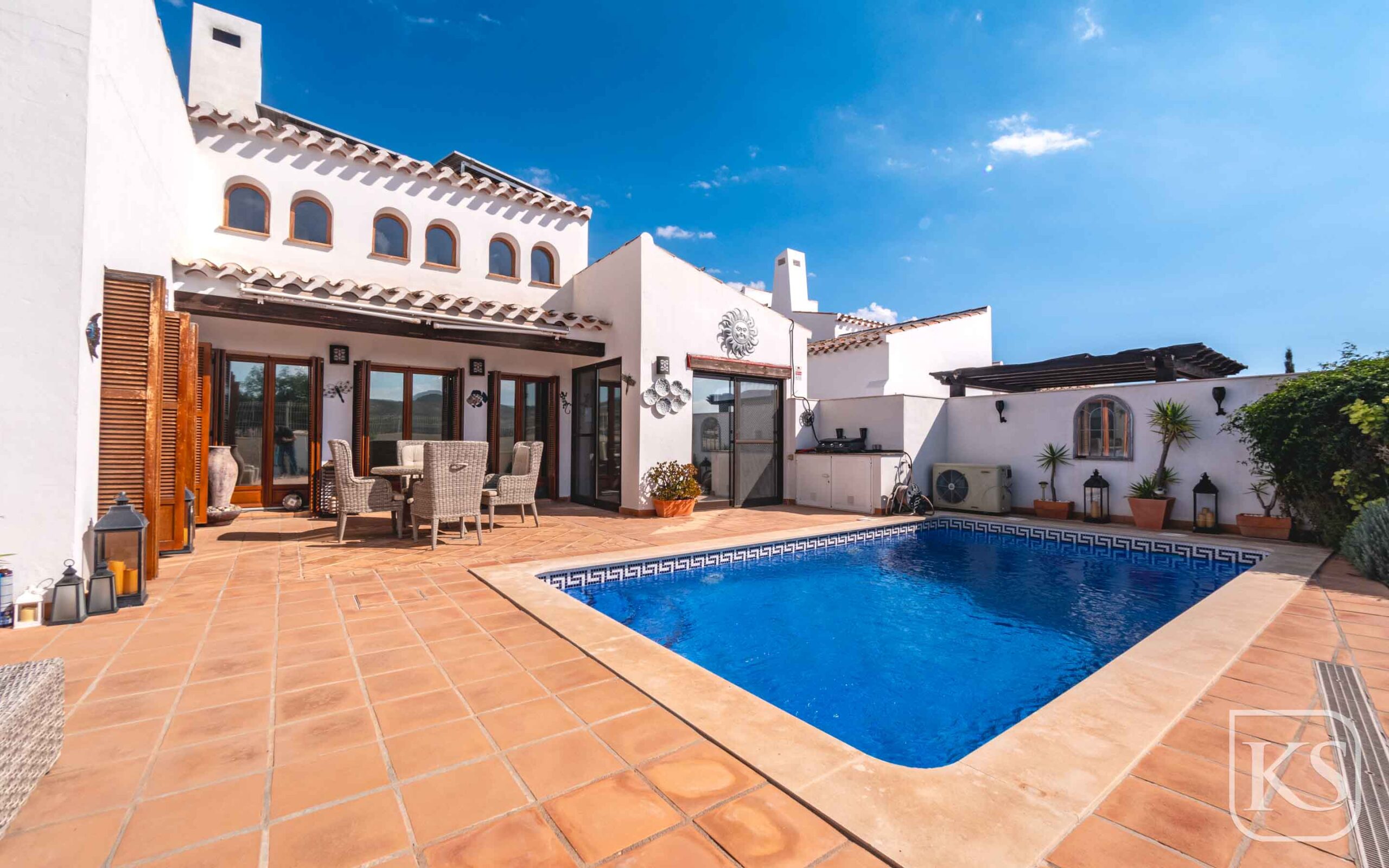 Keystyle Properties is delighted to present a magnificent extended Alcor Villa with a garage, found within the picturesque El Valle Golf Resort. This exceptional property offers three generous double bedrooms, a lavish extended kitchen complete with an adjoining laundry room/pantry and an enclosed conservatory with a garden and heated swimming pool. Whether you’re looking for a family home or your home away from home, this residence in the coveted region of Murcia is sure to captivate your interest.