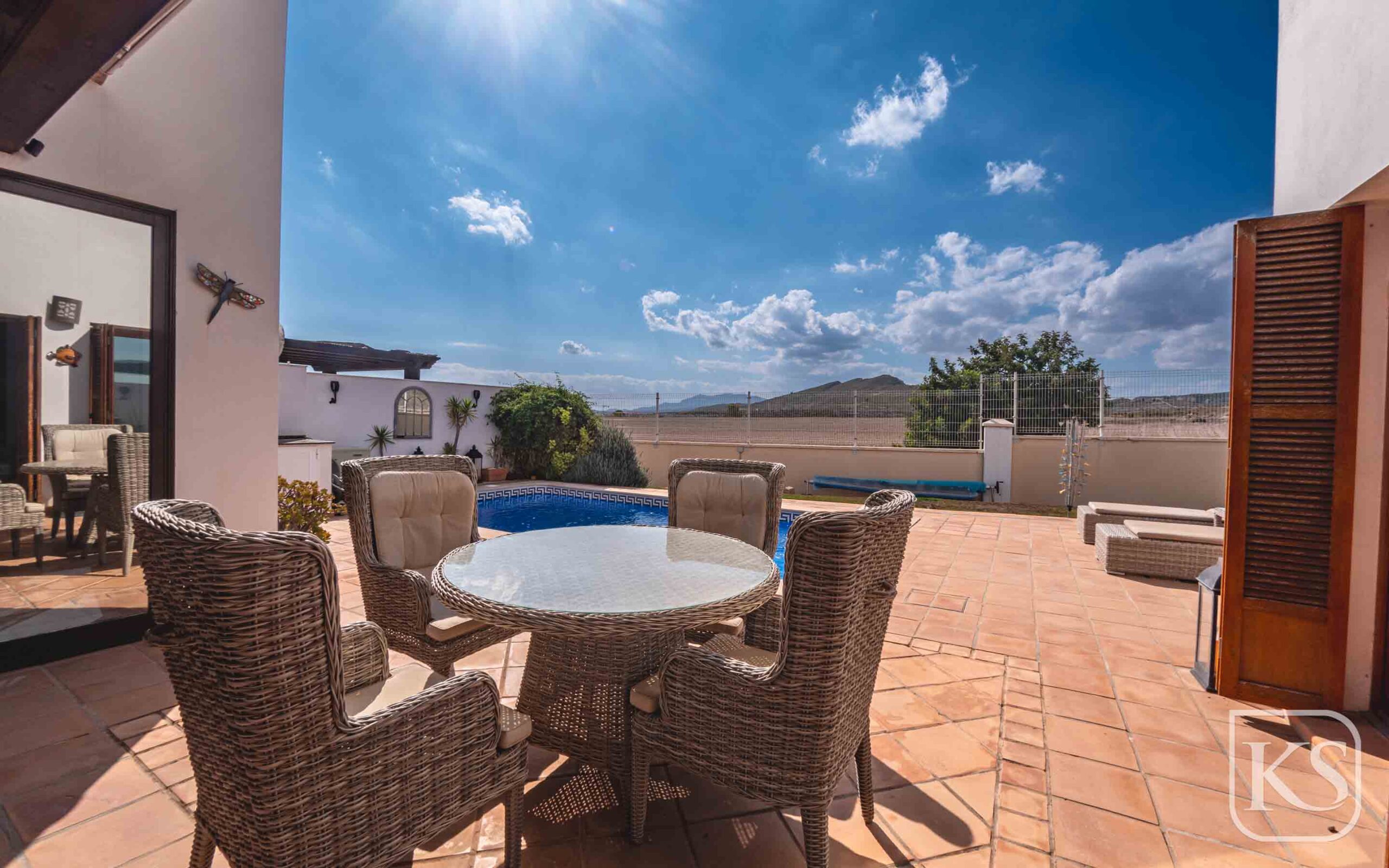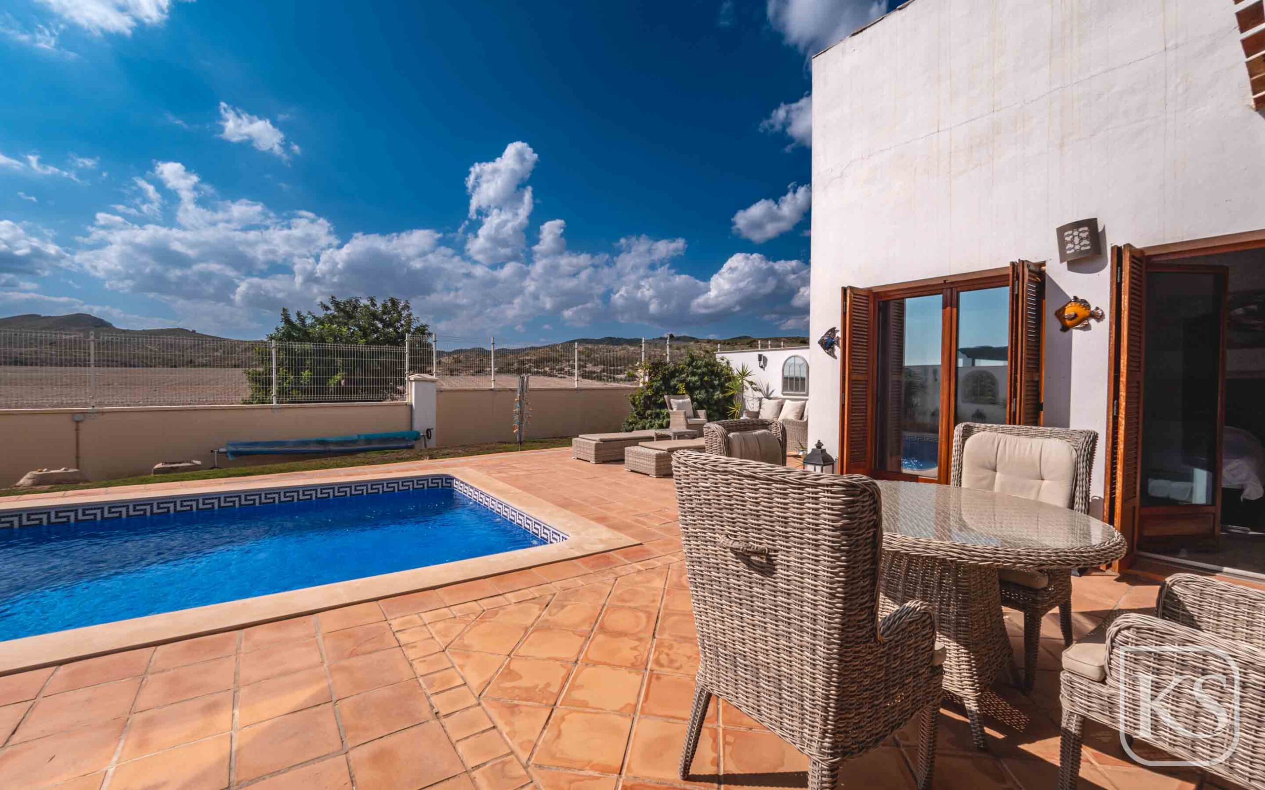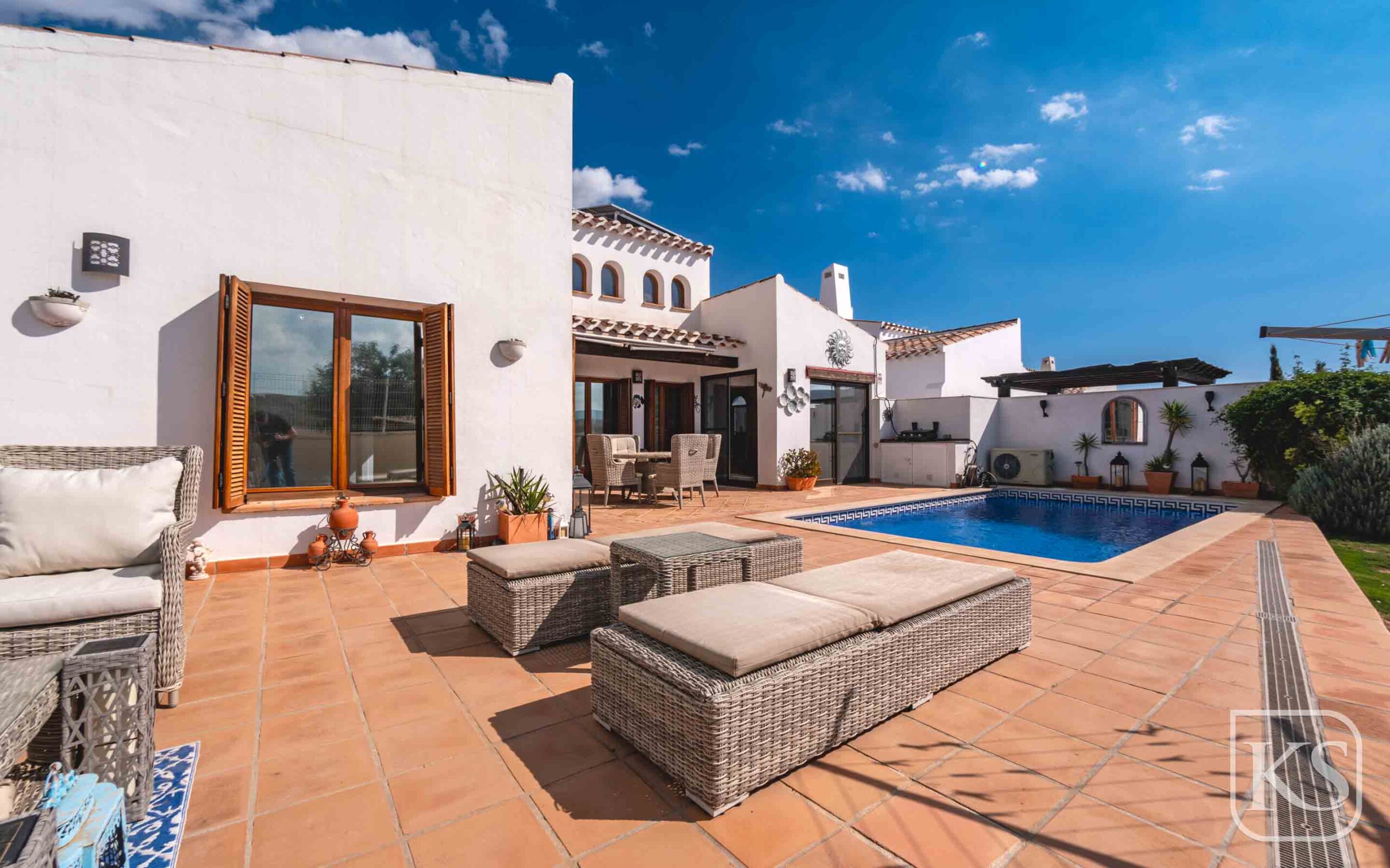 Keystyle Properties is delighted to present a magnificent extended Alcor Villa with a garage, found within the picturesque El Valle Golf Resort. This exceptional property offers three generous double bedrooms, a lavish extended kitchen complete with an adjoining laundry room/pantry and an enclosed conservatory with a garden and heated swimming pool. Whether you’re looking for a family home or your home away from home, this residence in the coveted region of Murcia is sure to captivate your interest.