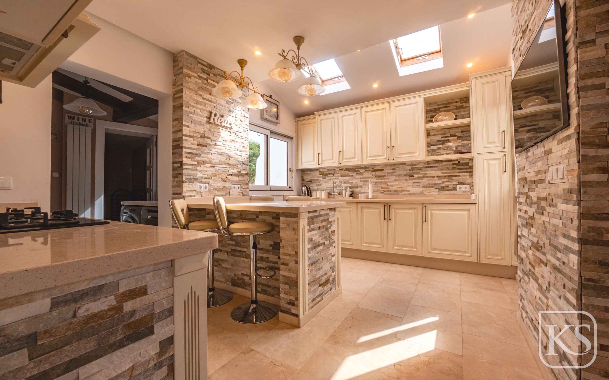 One of the standout features of this residence is its expansive open-plan kitchen, tastefully adorned with high-quality fixtures and fittings, radiating elegance and style. The kitchen is further enhanced by a charming breakfast bar/island, and ambient LED lighting that adds a touch of sophistication to your evening culinary endeavours. The kitchen has a large gas stove, and adjacent you’ll find a convenient laundry room/pantry, providing additional storage solutions.