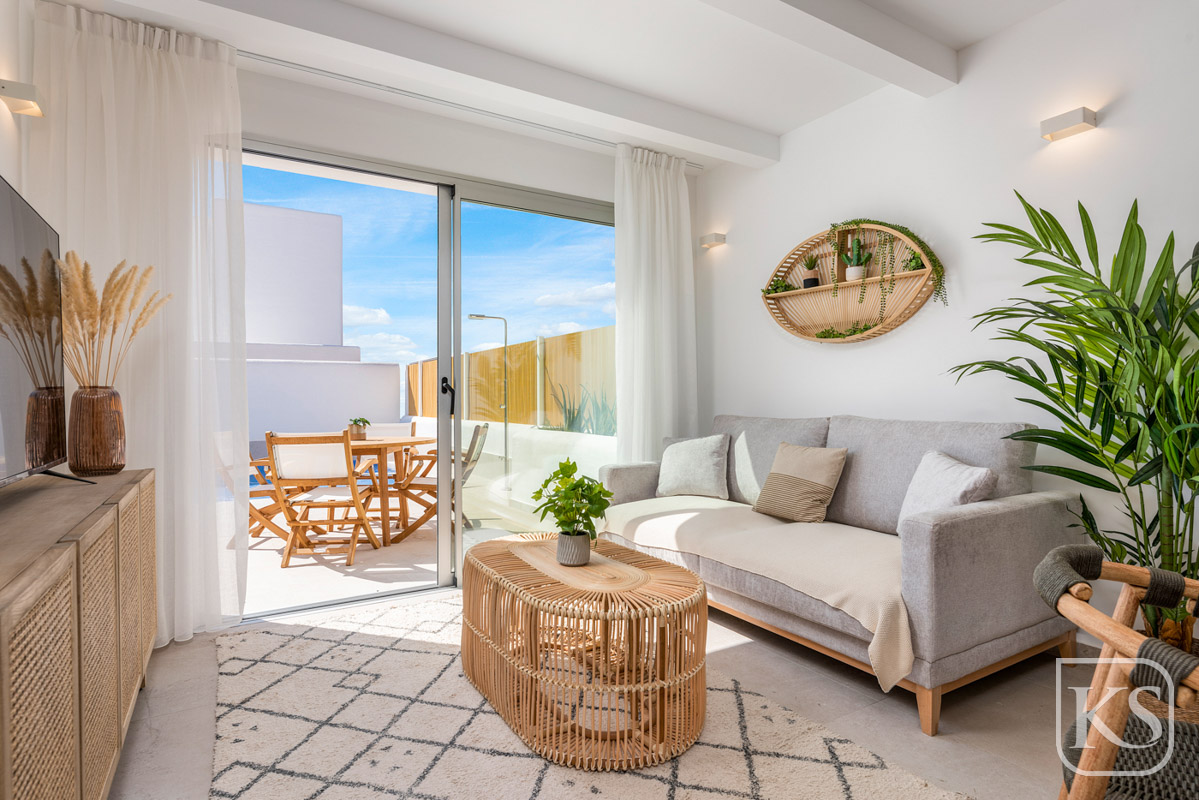 Built to impeccable standards, the properties boast reinforced concrete foundations and structures, along with a flat non-accessible roof with double waterproofing and thermal insulation. The exterior facade is finished with special Ibizan mortar, while the interiors feature first-quality ceramic tiles and smooth plaster finishes.