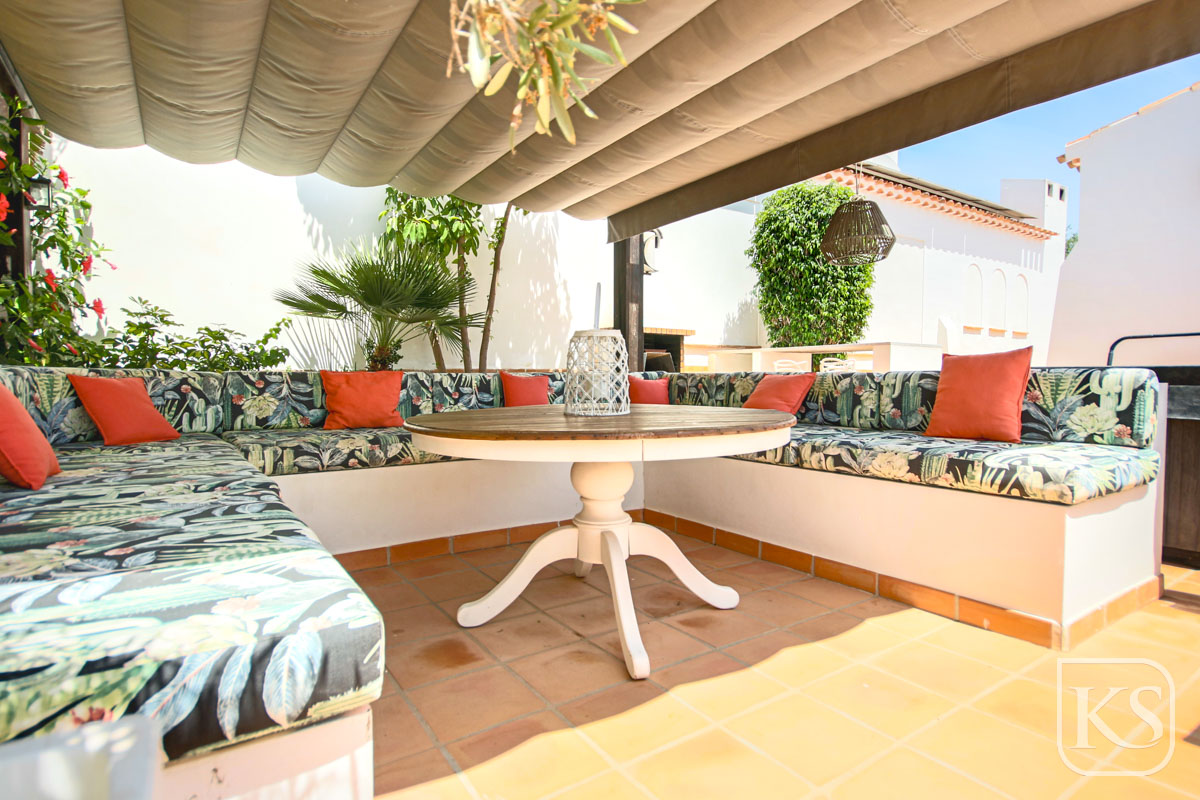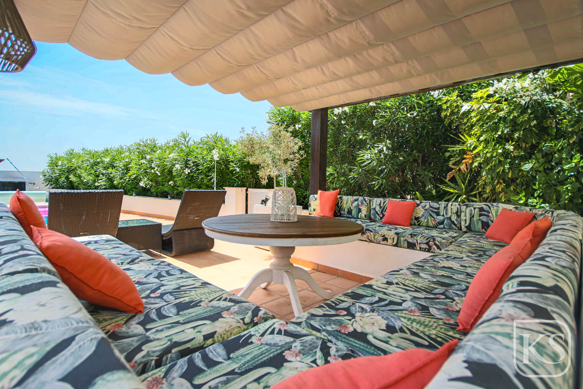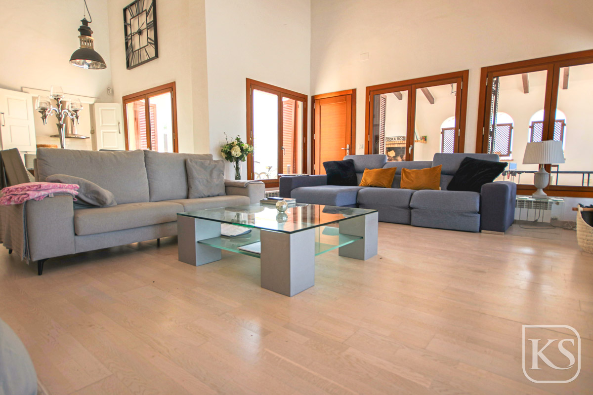 Step into a residence defined by character and charm, from its high vaulted beamed ceilings to Italian glass doors that flood the home with light and connect the interior to the tranquil outdoor areas. The villa boasts a large garden with a generous private pool, multiple terraces, a firepit, and a pergola lounge area—all crafted for enjoying Murcia’s year-round sunshine and picturesque golf course views.