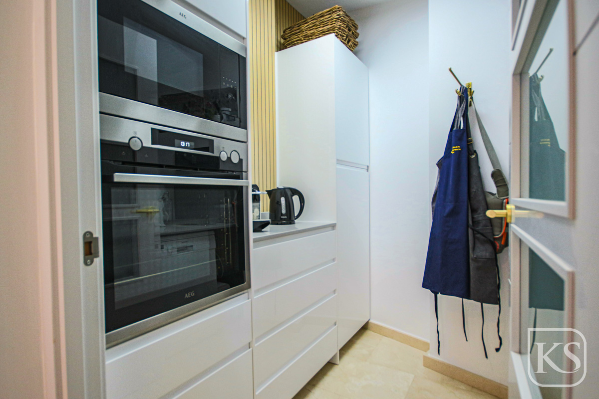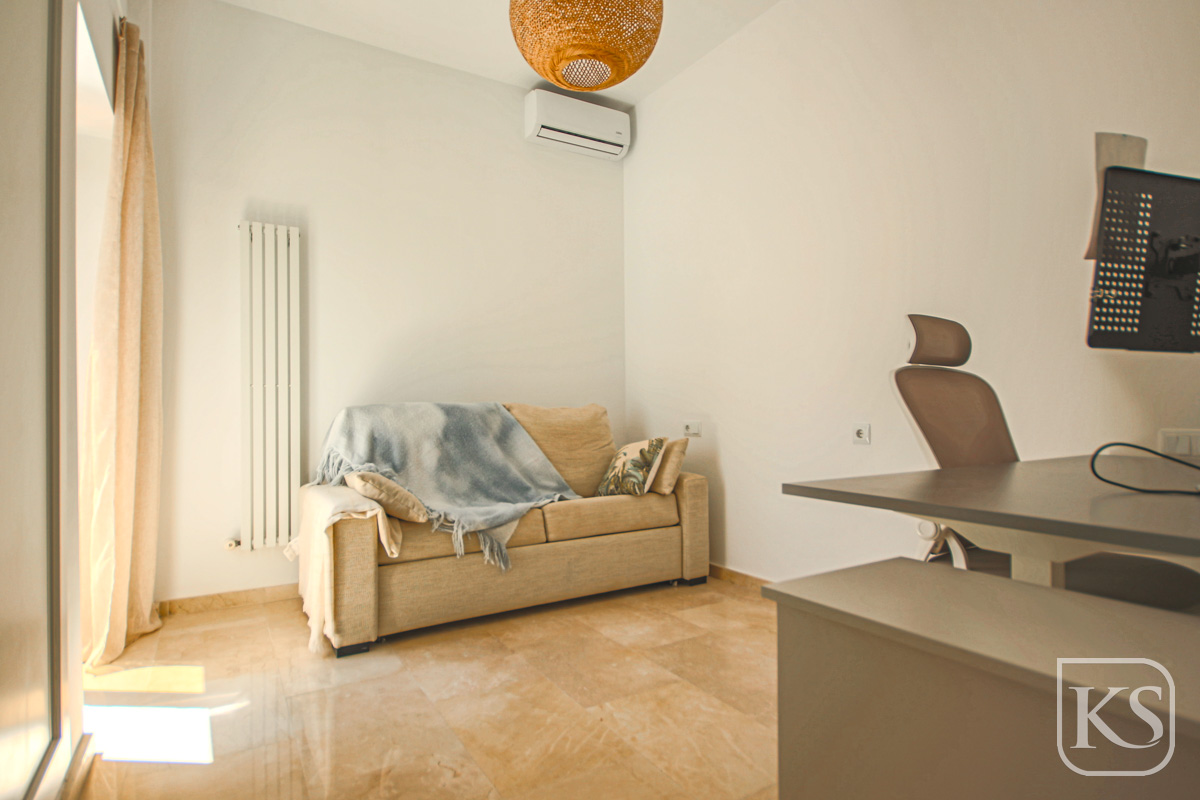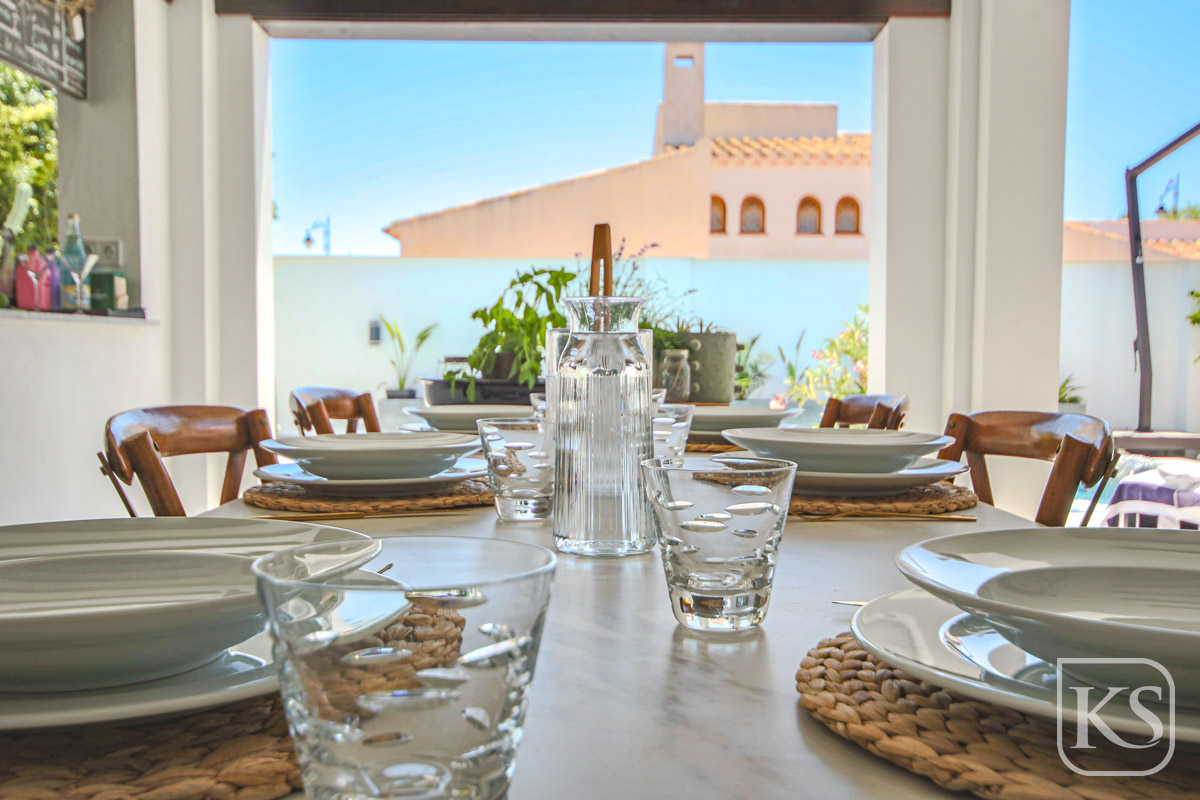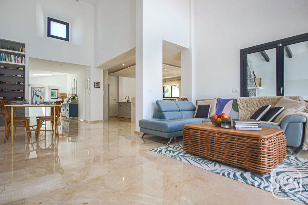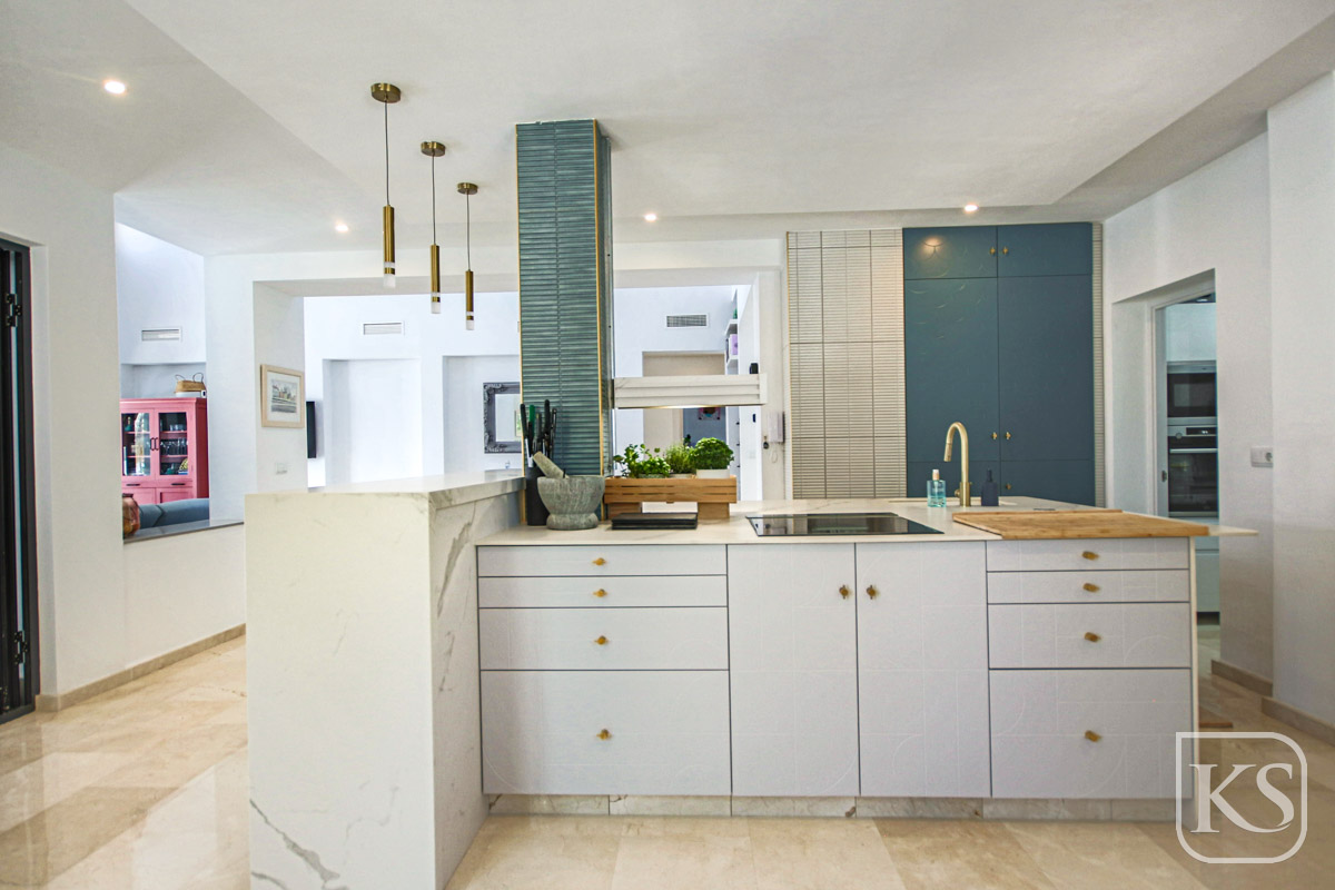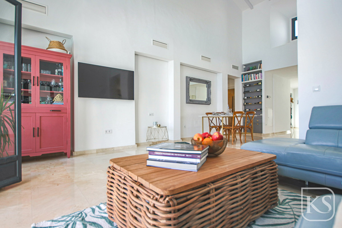 Step inside and feel the bright, airy ambience created by the fresh renovation, new tiling, and carefully curated décor. The villa features an extended entrance hallway leading into a spacious open-plan kitchen, living, and dining area.