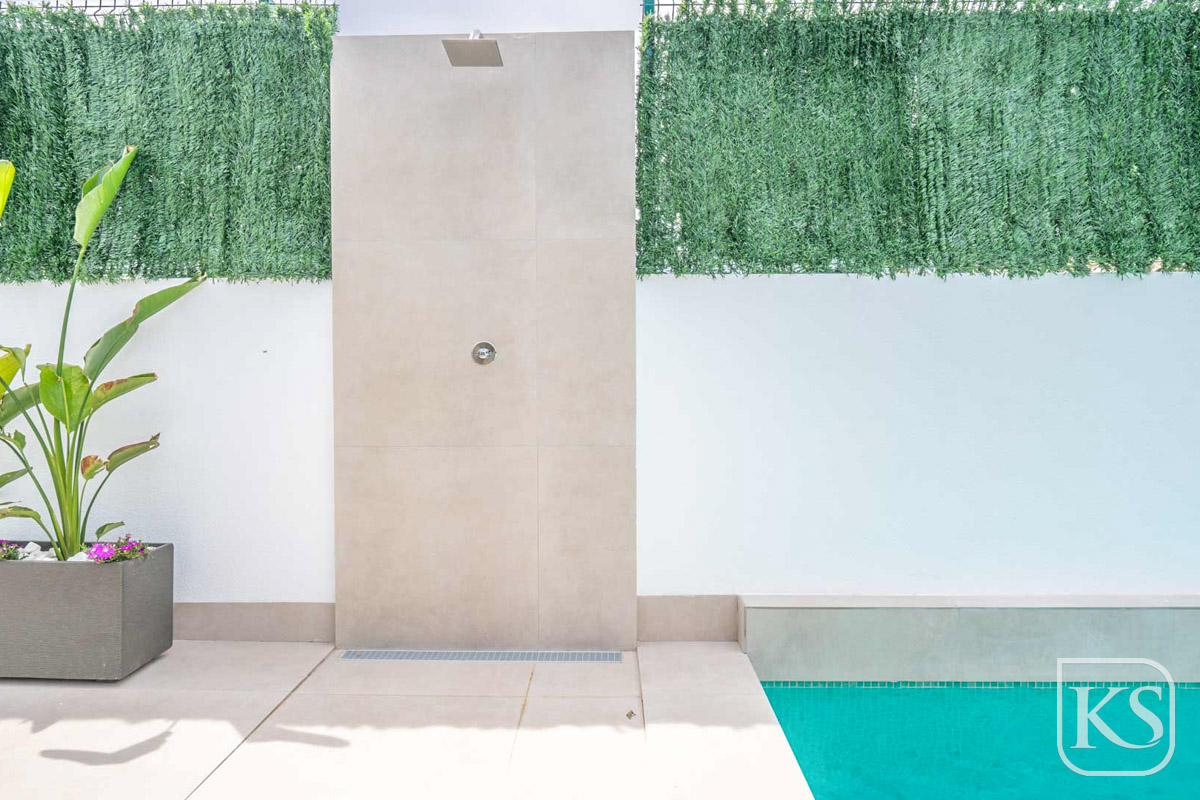 The highlight of each villa is the private oasis awaiting you outside. Step through the sliding doors to discover your own slice of paradise, complete with a generous 6x3m private pool, perfect for refreshing dips on warm summer days. Whether you're lounging by the poolside or hosting a barbecue with friends and family, the outdoor area offers the ideal setting for enjoying the Mediterranean lifestyle.
